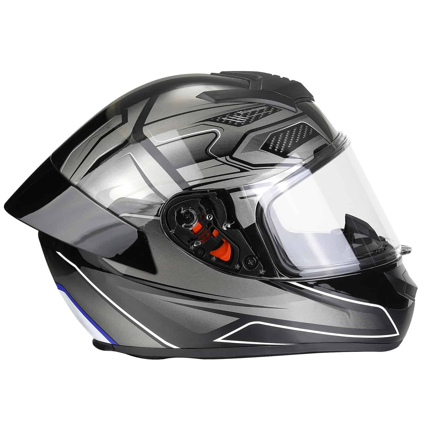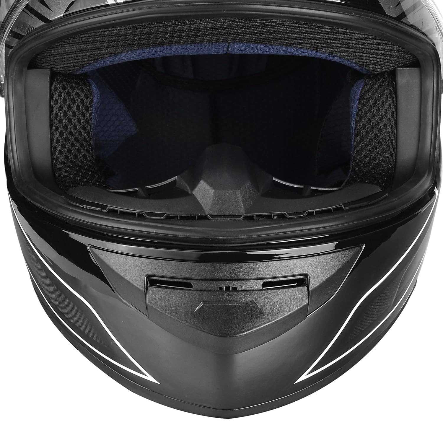 Diseño de cubierta aerodinámica aerodinámica y múltiples paneles de ventilación que pueden reducir el ruido y la resistencia al viento, además de proporcionar más disipación de calor, brindando una experiencia de viaje cómoda. Diseño compacto y ligero, todo el casco pesa aproximadamente 46 OZ, reduciendo la carga sobre la cabeza. Sistema de visera fácil y rápido de cambiar, consulte el video de instrucciones que se encuentra debajo de las imágenes del producto. Ofrecemos dos configuraciones para los cascos, solo casco con visera transparente o casco con visera transparente, visera ahumada y juego de películas antivaho, que se pueden seleccionar en el lado derecho de las imágenes del producto. Forro desmontable, transpirable y lavable engrosado, que proporciona más protección y comodidad.