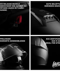 5. Visera doble Con visera antivaho y con revestimiento UV al 99%, el casco atv Westt protege la cara del polvo, insectos, lluvia y rayos UV en cualquier escena o condiciones de luz cambiantes. Se puede operar desde el exterior, también fácilmente con un guante.