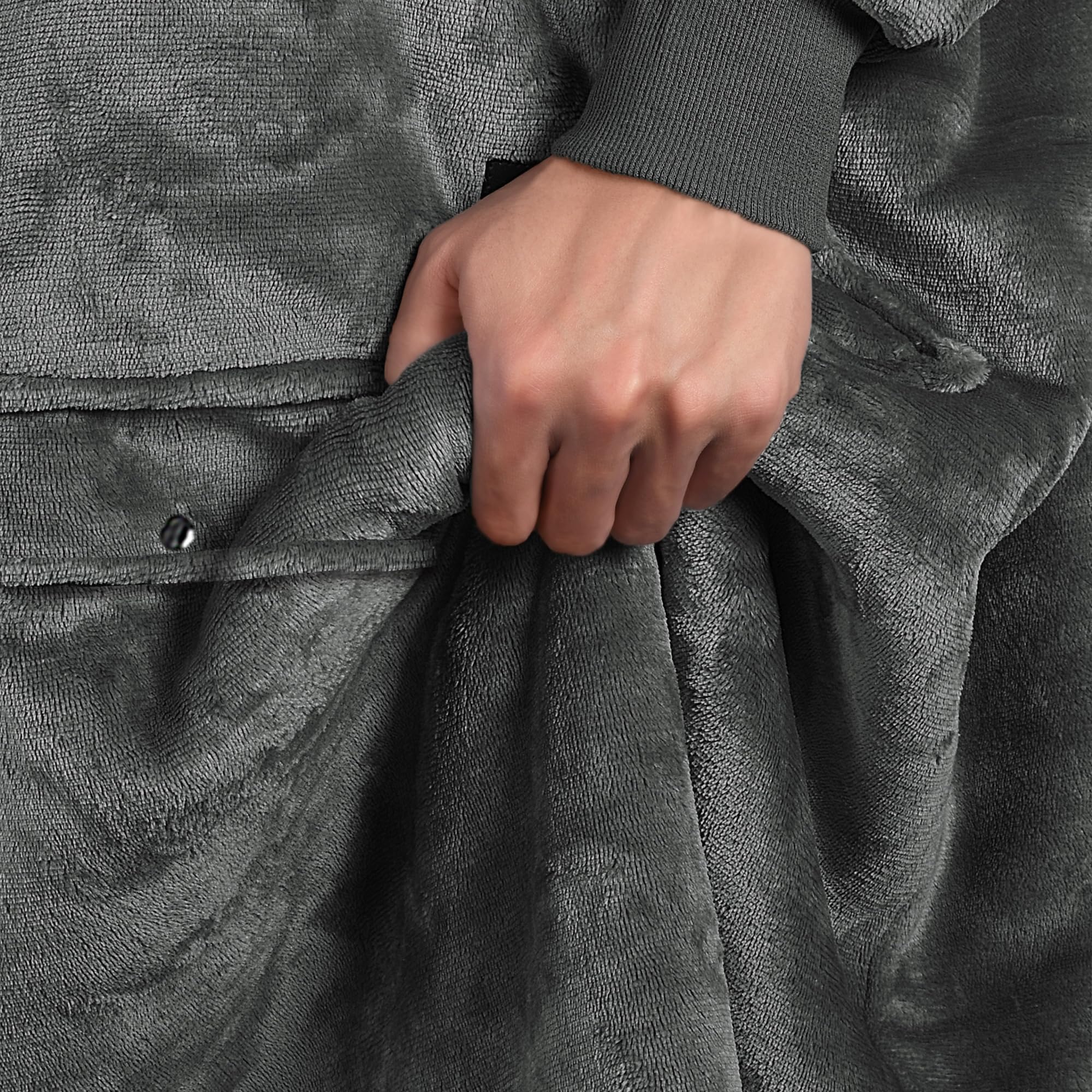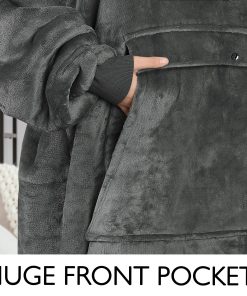 3. Nuestra manta con capucha reversible de tamaño extra grande es acogedora con un tacto suave. No importa por qué lado elijas usarla, el lado de Sherpa mullido o el material de microfelpa suave, ambas telas son extremadamente suaves con una sensación cálida y cómoda para todo tu cuerpo.