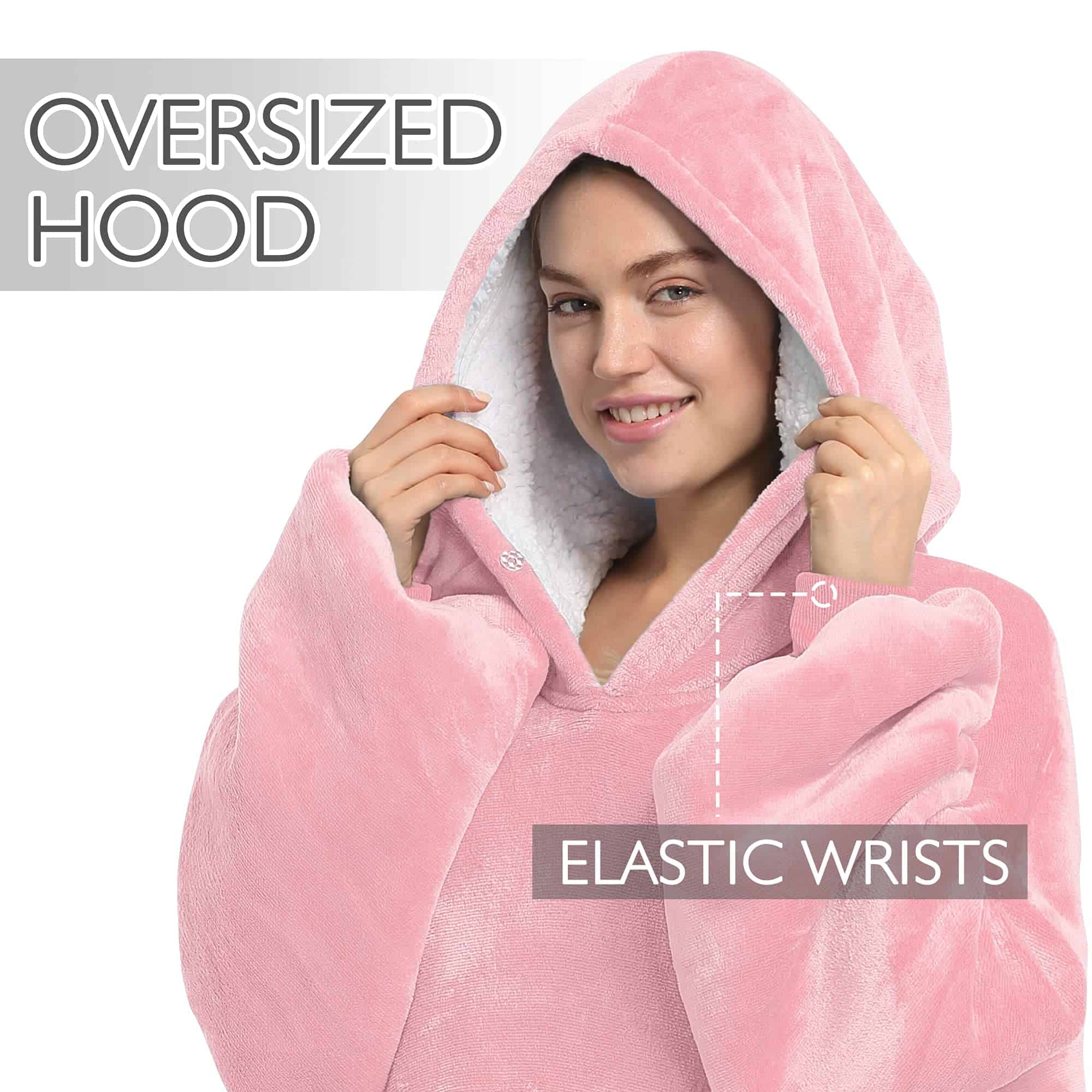 3. Nuestra manta con capucha reversible de tamaño extra grande es acogedora y suave al tacto. No importa por cuál lado elijas usarla, ya sea el lado de Sherpa peludo o el material de microfelpa suave, ambas telas son extremadamente suaves con una sensación cálida y cómoda para todo tu cuerpo.