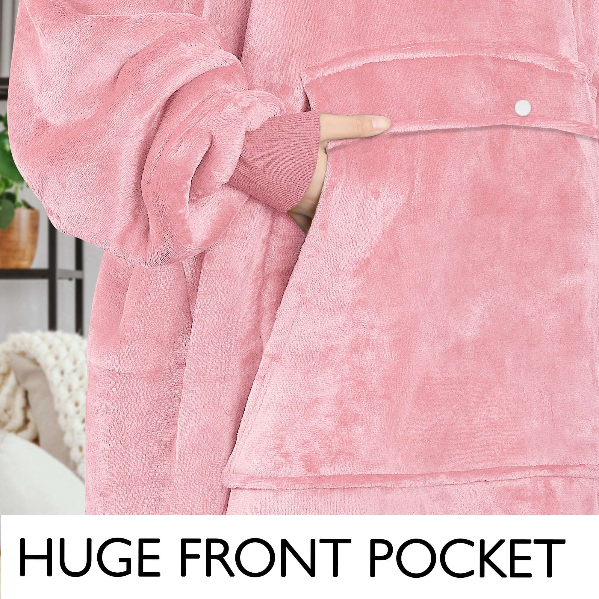 4. El bolsillo frontal extra grande mantiene tus manos calientes y también tiene un bolsillo más pequeño en el interior para el celular, control remoto de la TV y/o artículos personales pequeños.