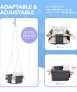 3. Duradero para Uso Diario – la lona suave de nuestro columpio de hamaca es lavable a máquina. Este resistente asiento de columpio para bebés/niños pequeños mide 16 x 16 pulgadas (40 x 40 cm) con una capacidad de 110 libras (50 kg). También viene con hardware de instalación resistente.
