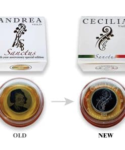 Inicialmente presentada como la Edición Especial del Décimo Aniversario de CiA en 2018. CECILIA Sanctus está formulada para brindar más posibilidades en el sonido de instrumentos de cuerda. Esta combinación única de dos sofisticadas fórmulas de resina proporciona el equilibrio óptimo para el sonido y el control del arco. Estas fórmulas se han colocado en dos áreas separadas en una pastilla especial de resina para mostrar la clara definición de sus roles. La fórmula Sanctus está hidrogenada para tener una excelente resistencia a la oxidación, lo que garantiza una experiencia de rendimiento constante de calidad a lo largo de su uso duradero de la resina. Disponible en viola, violín y cello. Cremona in America rebautiza la resina ANDREA como CECILIA. Todas las resinas premium de CiA se fabricarán bajo el nombre de CECILIA a partir de 2020.