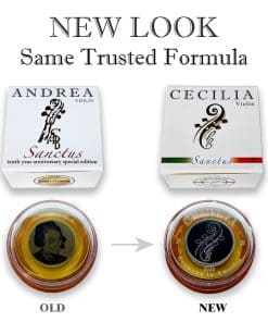 Introducida inicialmente como Especial del 10mo Aniversario de CiA en 2018. CECILIA Sanctus está formulada para brindar más posibilidades en el sonido de instrumentos de cuerda. Esta combinación única de dos fórmulas de resina sofisticadas proporciona el equilibrio óptimo para el sonido y el control del arco. Estas fórmulas se han colocado en dos áreas separadas en una pastilla especial de resina para mostrar la clara definición de sus roles. La fórmula Sanctus está hidrogenada para tener una excelente resistencia a la oxidación, lo que garantiza la experiencia de rendimiento de calidad consistente a lo largo de su uso duradero de la resina. Disponible en viola, violín y violonchelo. Cremona in America renombra la resina ANDREA como CECILIA. Todas las resinas premium de CiA se fabricarán bajo el nombre de CECILIA a partir de 2020.