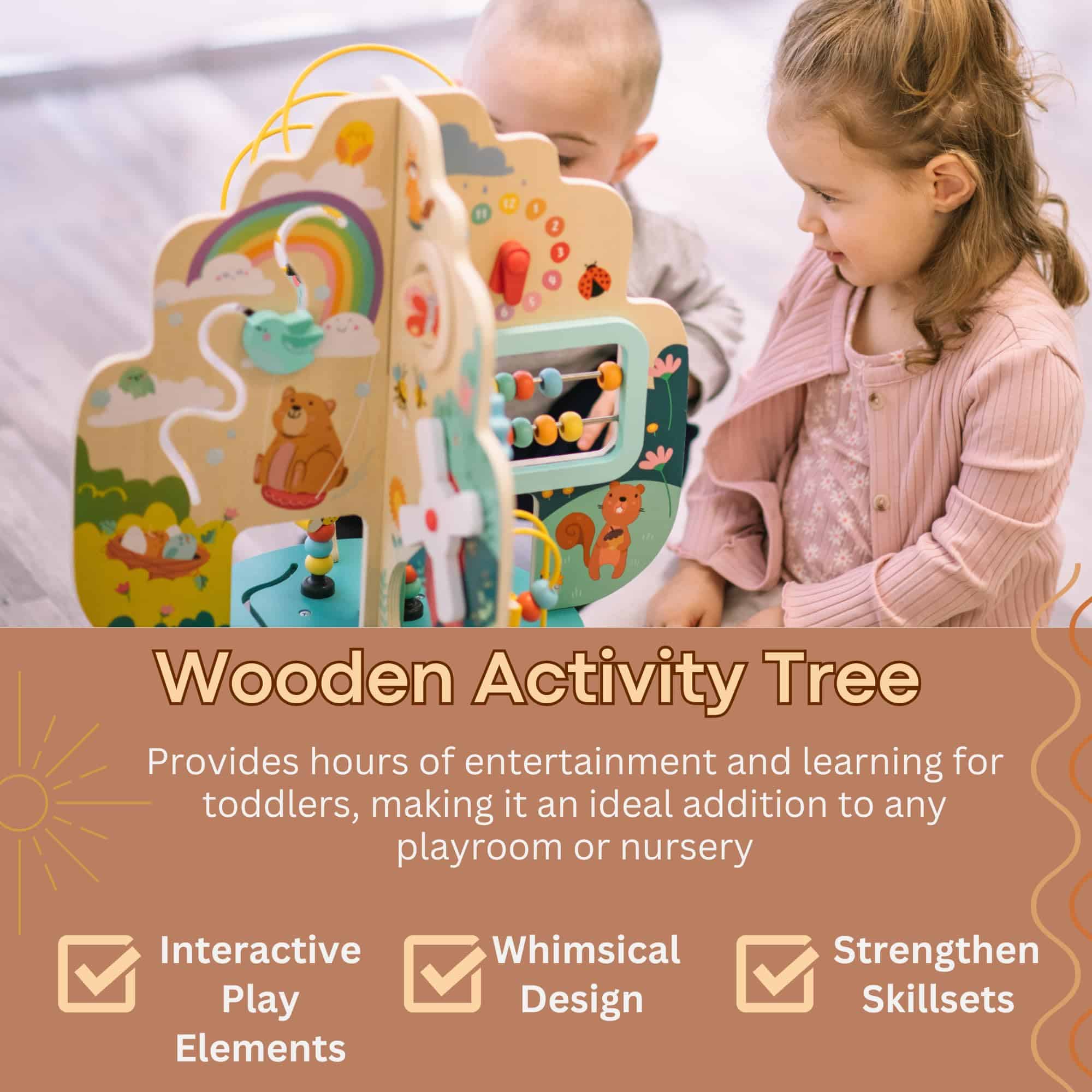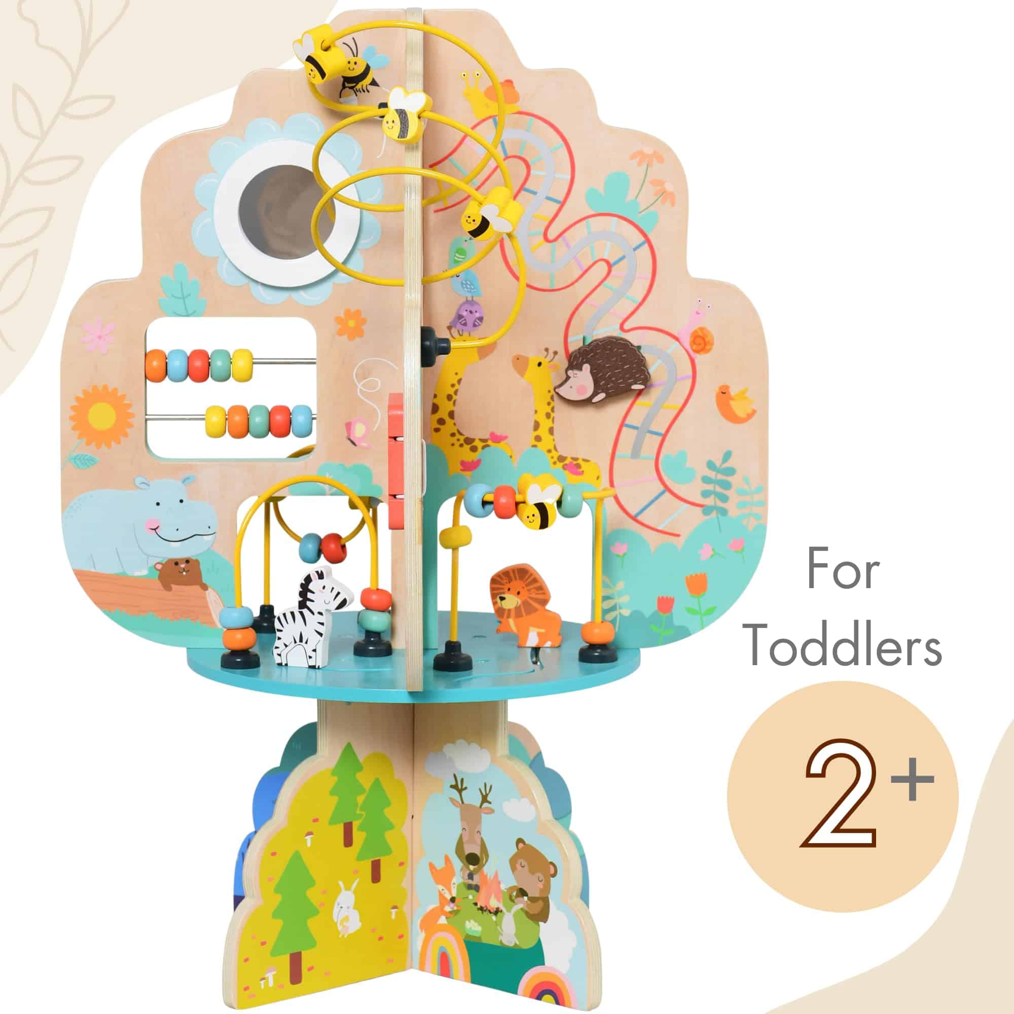 1. Juguetes Montessori – ¿Buscas nuevas actividades para bebés? ¡Prueba nuestro centro de actividades de madera! Nuestra mesa de árbol para niños está diseñada para proporcionar una amplia gama de actividades interactivas y estimulantes. Una gran alternativa a un juguete de cubo tradicional para bebés.