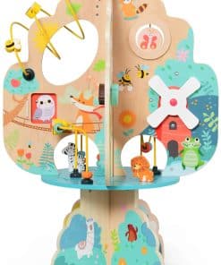 5. Diseño adorable – Este árbol de tablero ocupado para niños tiene un diseño estéticamente agradable que a tu hijo seguramente le encantará. Nuestro árbol y cubos de actividades de madera tienen una temática de aventura y descubrimiento de animales lindos que hacen el regalo perfecto.