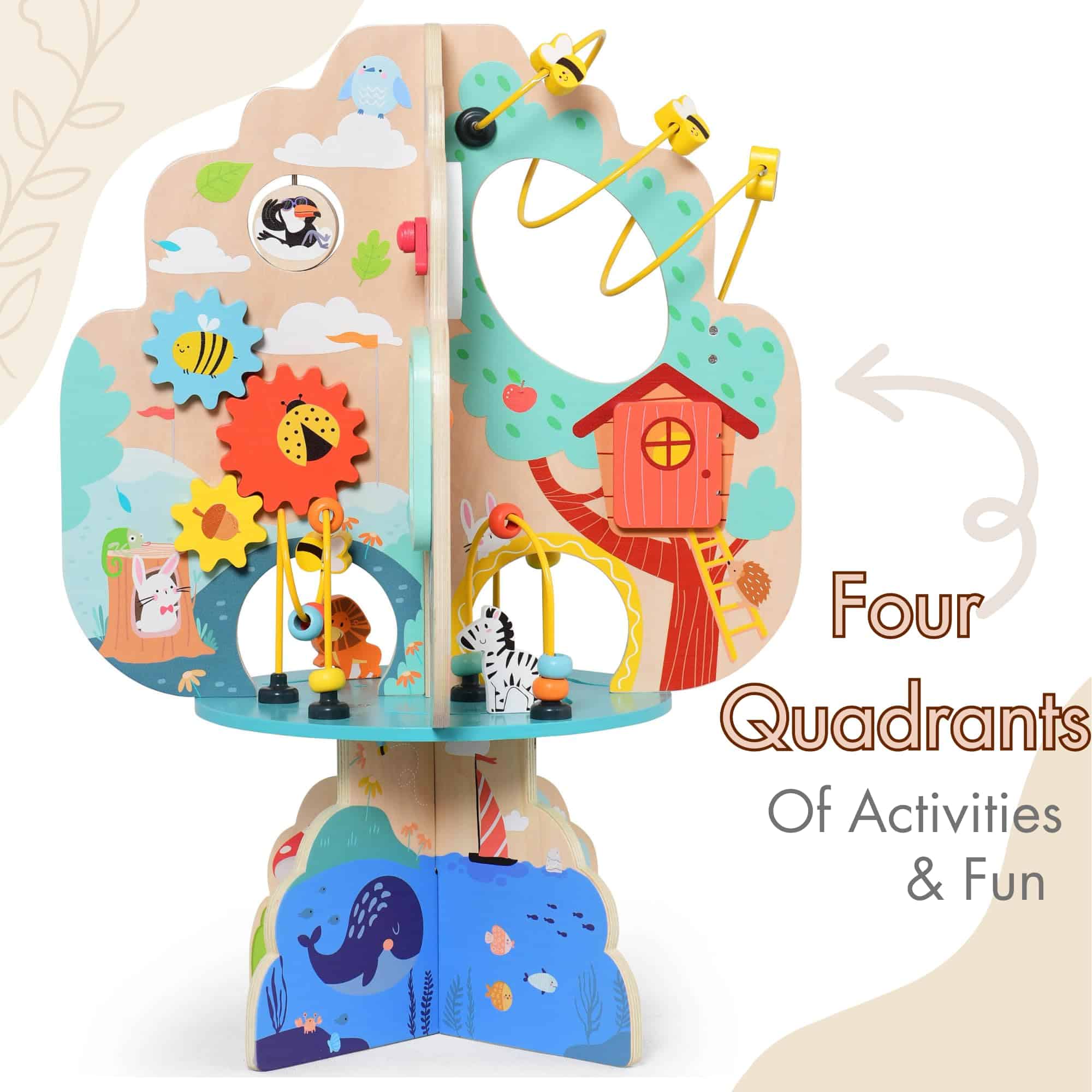 3. Mesa de actividades de madera resistente – Nuestra mesa de actividades para niños mayores de 2 años está hecha de madera duradera de alta calidad, asegurando que pueda resistir incluso el juego más enérgico. Nuestra gran mesa de cubo de actividades de árbol tiene pintura no tóxica y es segura para niños pequeños.