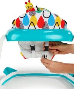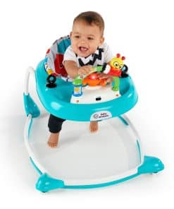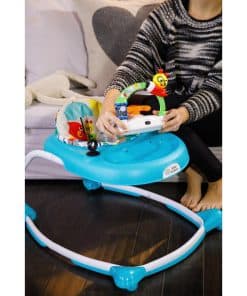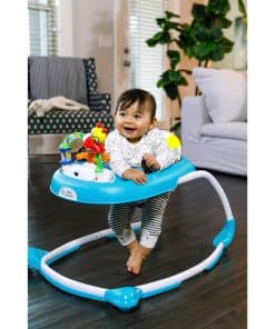 ¡Arriba, arriba y lejos! Con la ayuda de Baby Einstein y amigos, tu pequeño piloto volará de una habitación a otra en el Sky Explorers Baby Walker. Tres posiciones de altura ajustables significan que sus deditos de los pies podrán encontrar su posición incluso mientras crece tan alto como el cielo. Luces, canciones y sonidos estimularán los sentidos del bebé mientras explora los grandes cielos azules del descubrimiento. Un asiento alto y mullido le brinda al bebé el soporte y la comodidad que necesita para abrocharse y volar a través del aire abierto de la posibilidad. La estación de juguete desmontable lleva la diversión a donde sea que el bebé quiera desplegar sus alas, desde el juego en el suelo hasta los viajes por carretera.