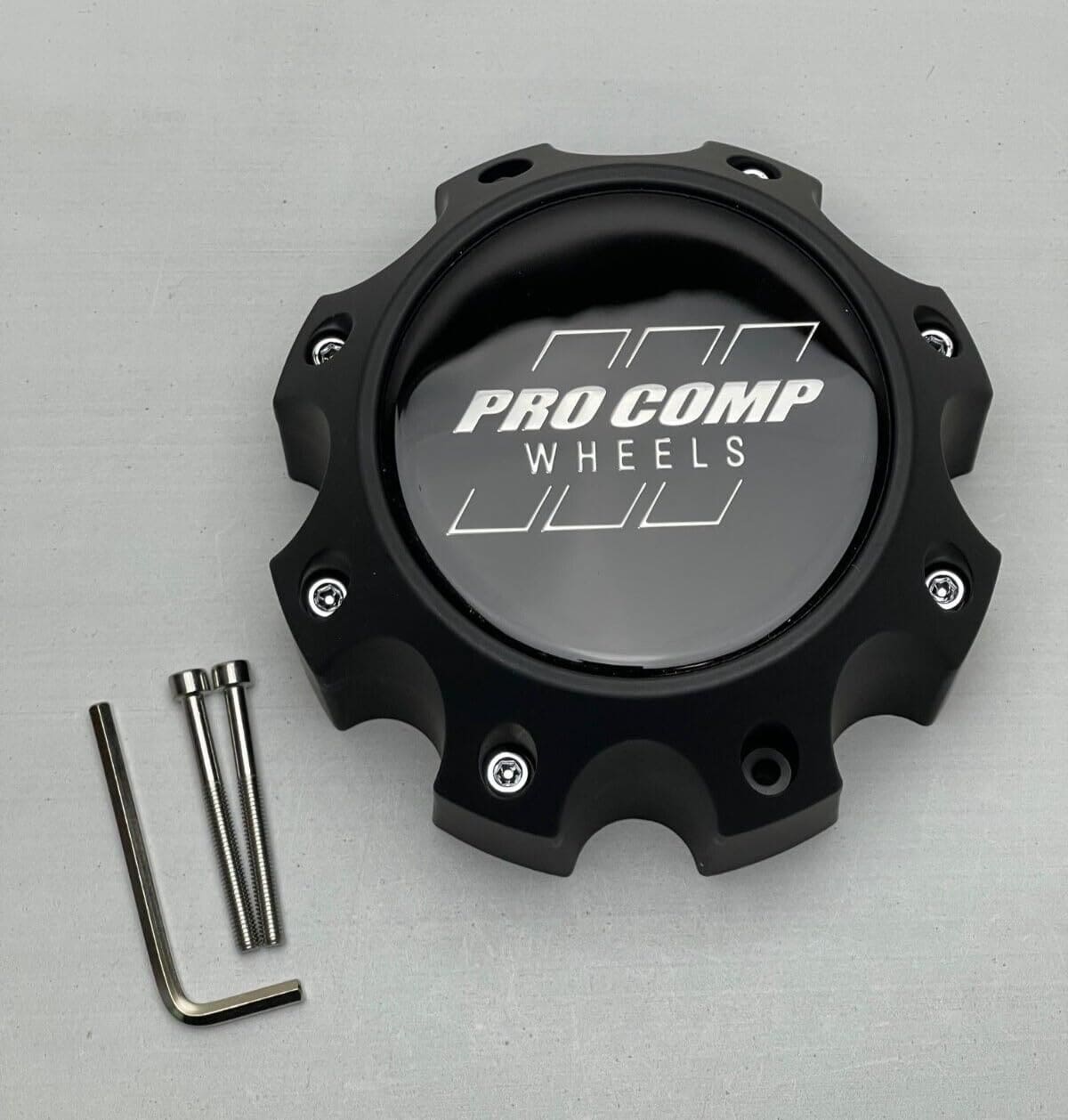 Centro de llanta plano negro Pro Comp con tornillos 703186502 6031CAP1 S909-16 Logo de resina