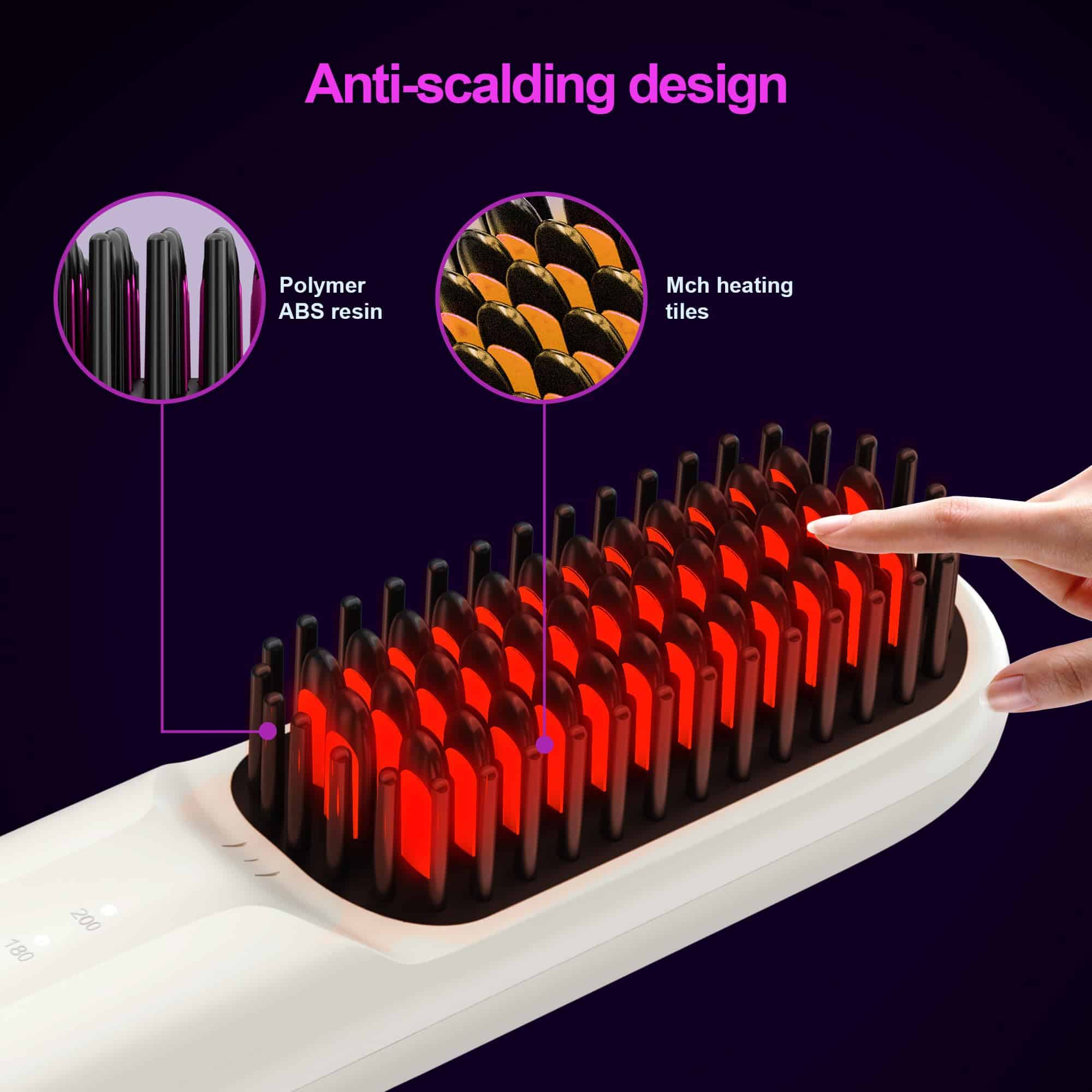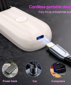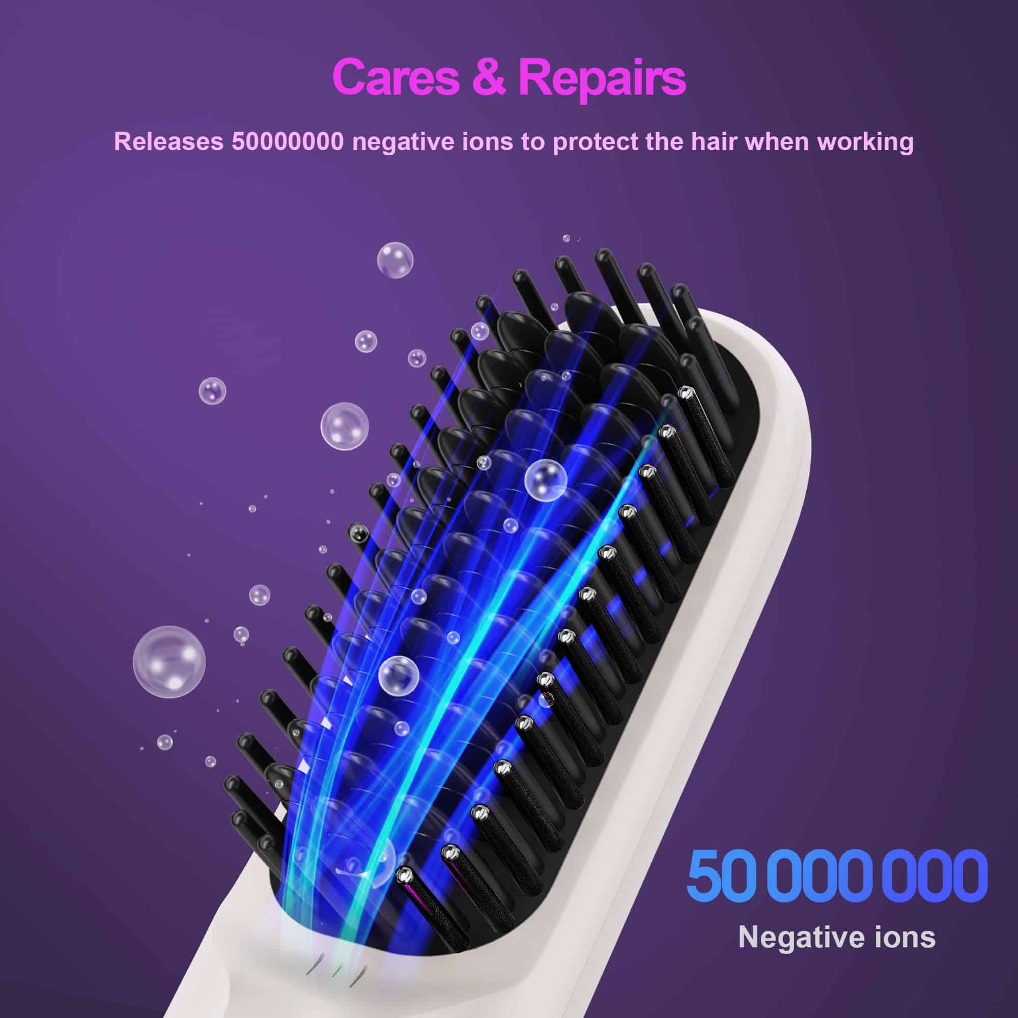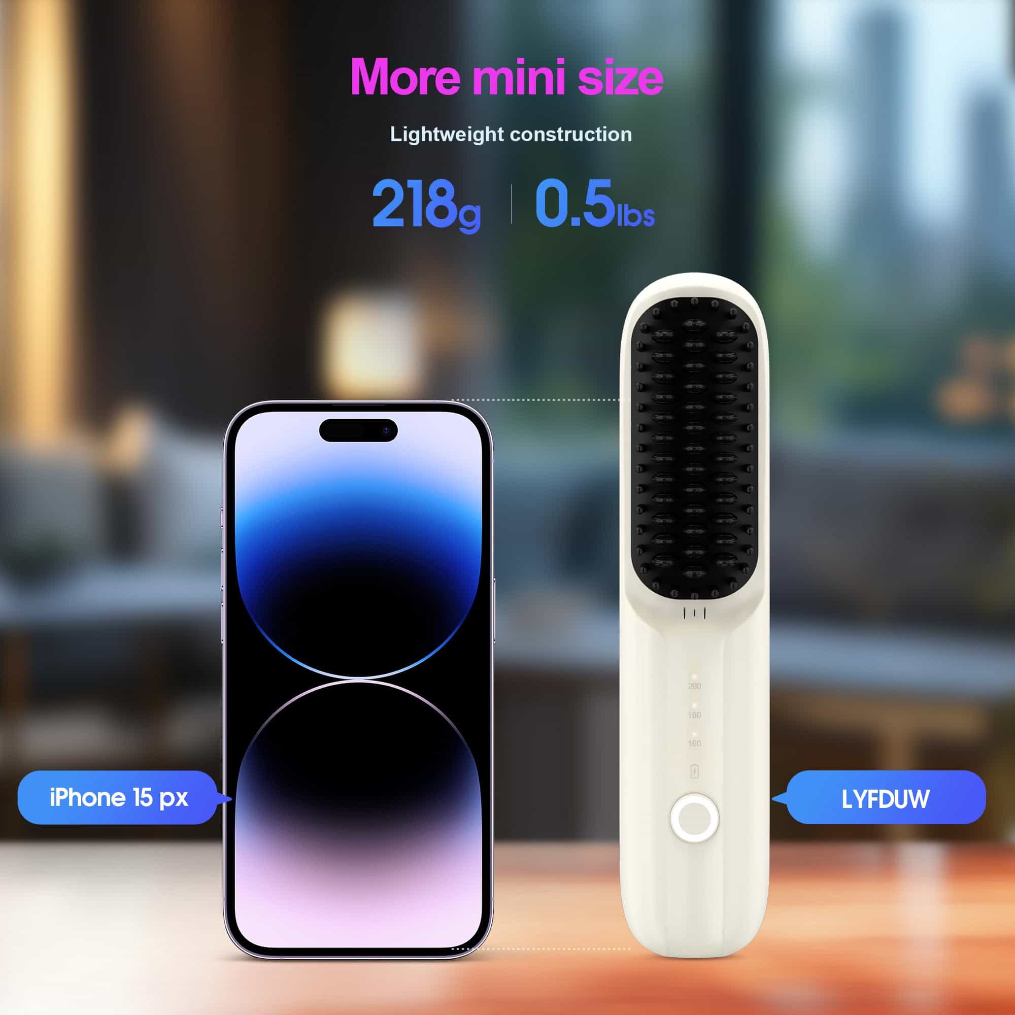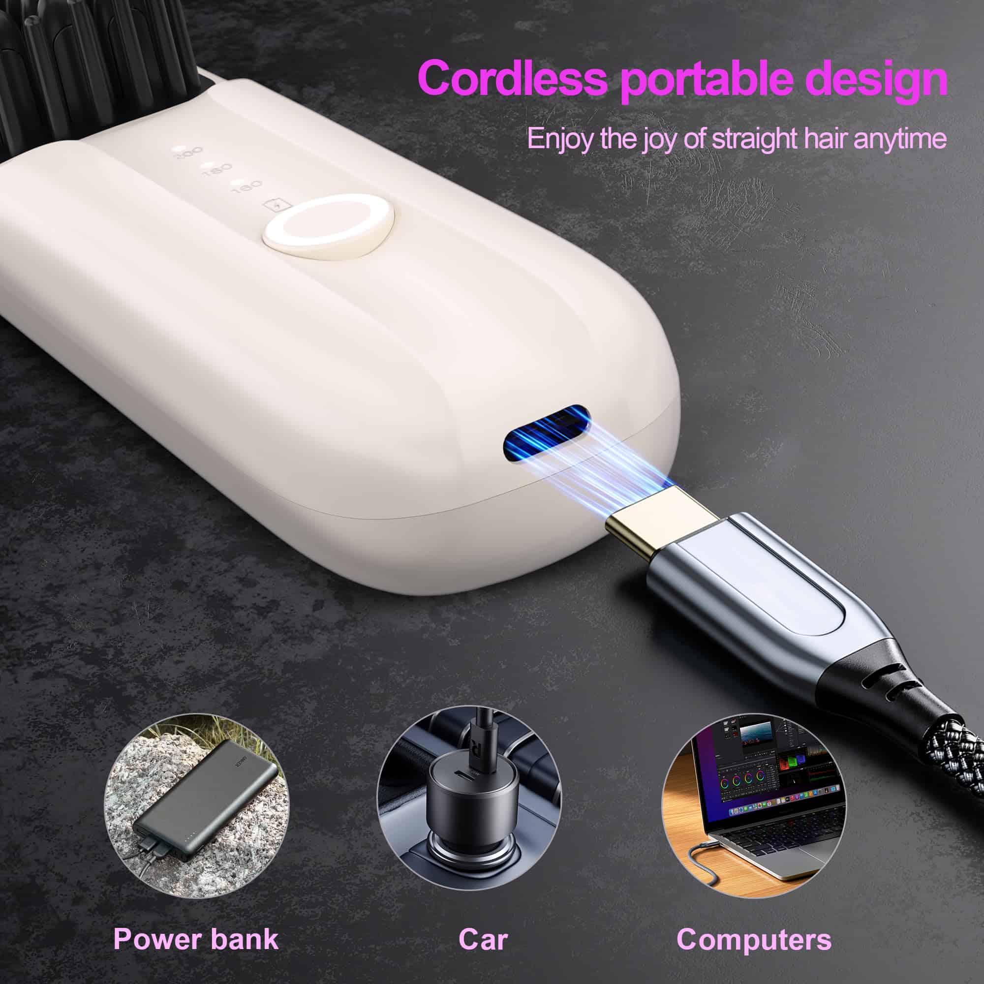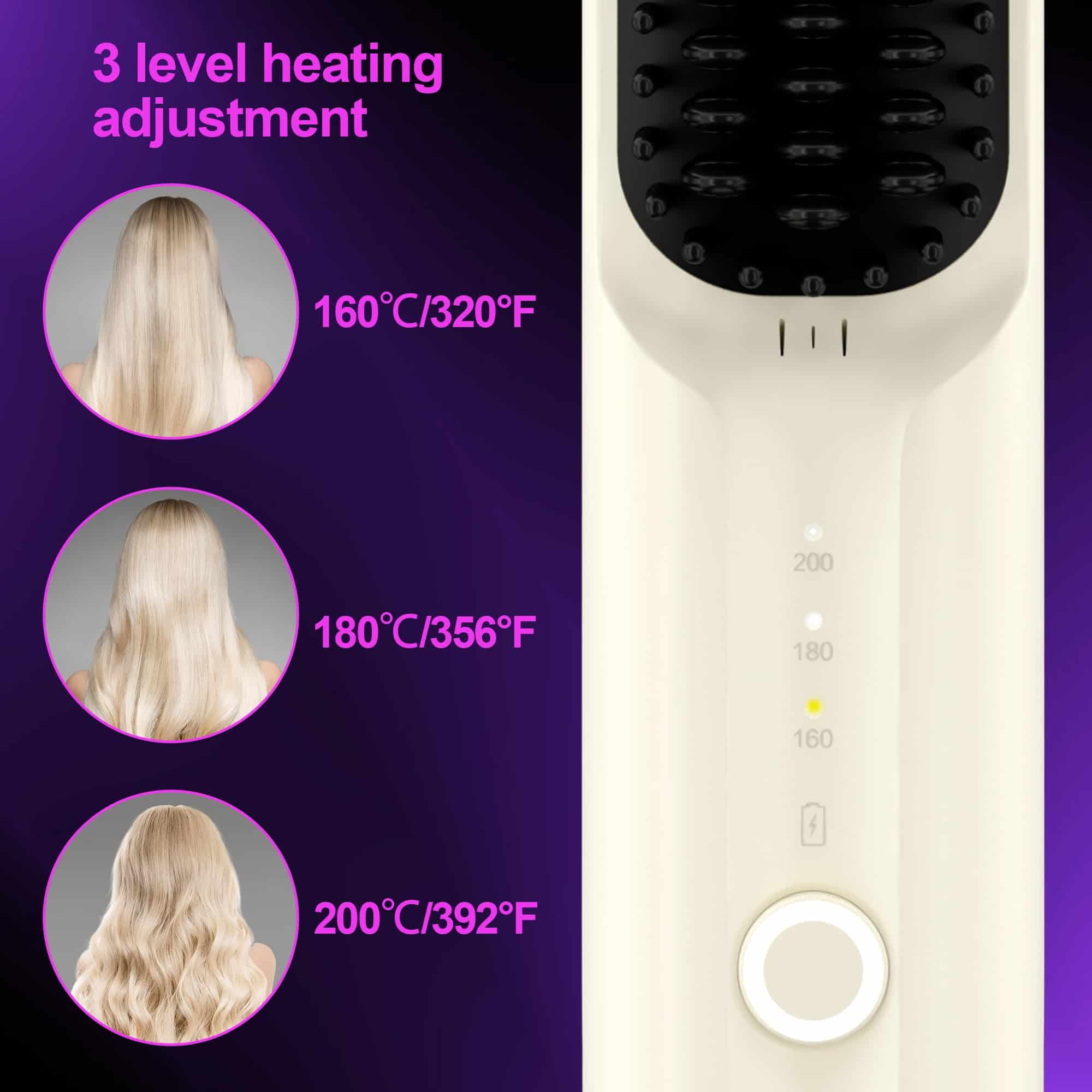 Cepillo Alisador Inalámbrico, Cepillo Alisador Portátil para Mujeres, Mini Peine Térmico de Iones Negativos para Viajes, Apagado Automático a los 30 Minutos, Recargable por USB, Calentamiento Rápido 3 Configuraciones de Temperatura