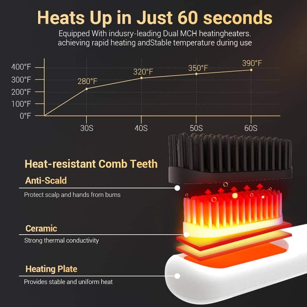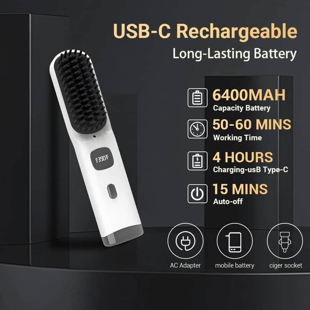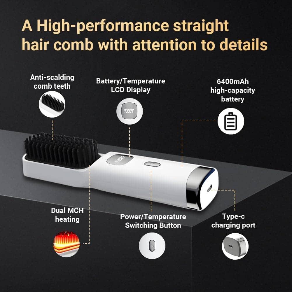 Cepillo Alisador Inalámbrico Portátil para Viajes con Peine
