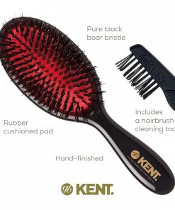 The Highest Quality Oval Paddle Hair Brush with the finest grade firm boar bristles. The bristles are heavily reinforced so they won�t fall out. You get what you pay for, professional quality!. A Small sized Oval Cushioned Wet Brush and dry brush finished in a midnight black colored handle with a ruby colored silicon cushion and filled with pure firm black natural bristle hair brush, ideal for a mens hair brush or hair brush for women. Dandruff Brush that cleans, conditions, and redistributes natural oils throughout your hair & scalp. The paddle brush has the highest reputation for nourishing and maintaining gorgeous hair. Wooden detangling brush and styling brush for livening up short or shoulder length thick hair. The Bristles are similar to a hair in construction, and sections cut from nearer the root of the bristle are strongest and best for brushing thick hair, while sections from the tip are softer and more suited to fine or thinning hair and a delicate scalp. Kent is the World’s oldest brush manufacturer, proudly displaying the Royal Warrant of the Queen since 1777. Today, Kent retains the craftsmanship and unprecedented quality that is their reputation, instilling their expertise in every brush.