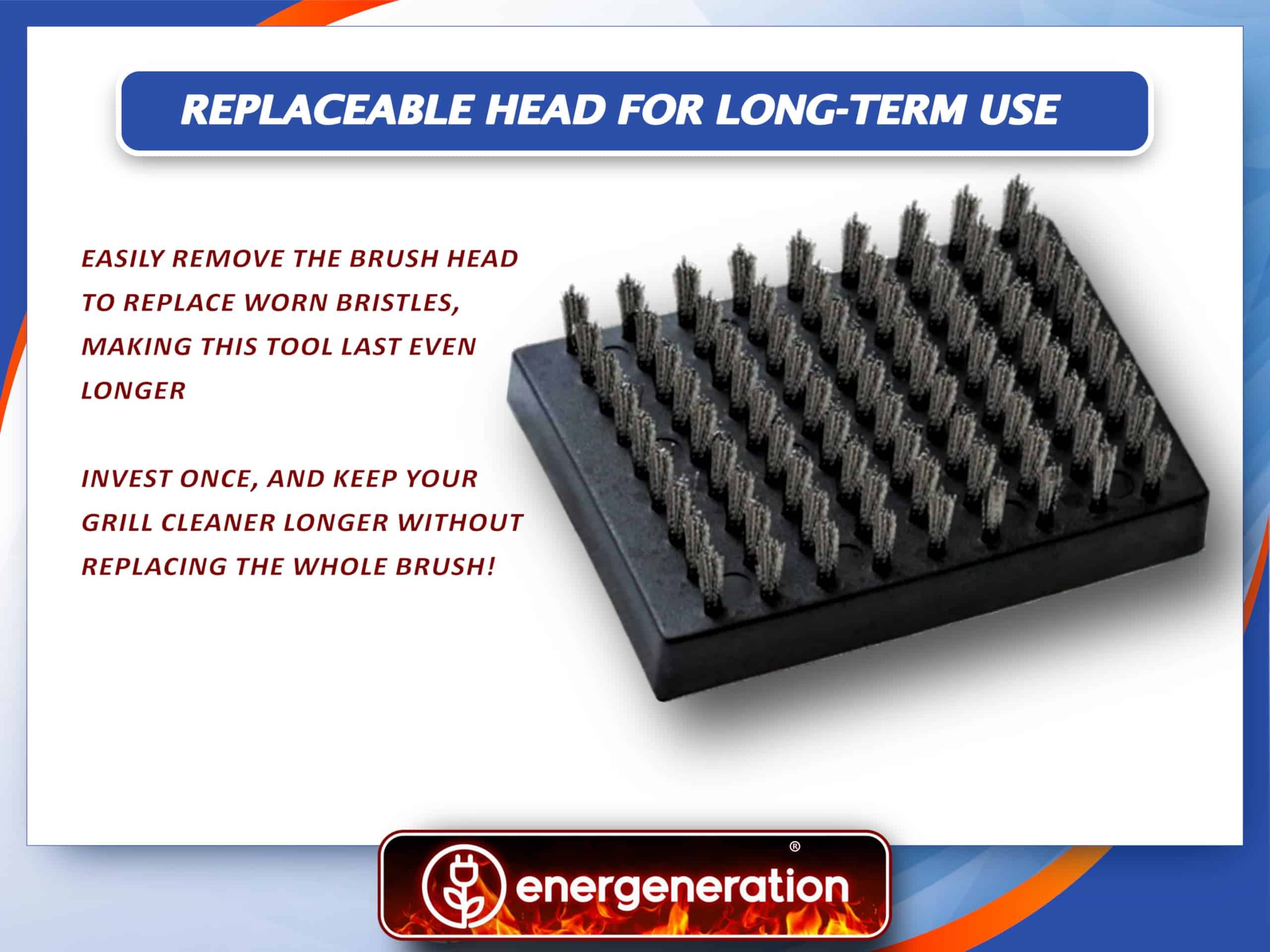 El cepillo de parrilla para parrilla exterior viene equipado con un soporte metálico para colgar para un almacenamiento fácil. Cuélgalo del mango lateral de tu parrilla o de un gancho de almacenamiento después de usarlo para un secado rápido y un fácil acceso. La cabeza del cepillo es reemplazable, por lo que no necesitas reemplazar toda la herramienta cuando las cerdas se desgasten, minimizando los desperdicios y asegurando que tu kit de limpieza de barbacoa se mantenga efectivo durante años. Este cepillo de parrilla exterior es el accesorio imprescindible para los parrilleros serios.