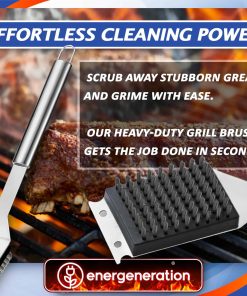 No más cepillos endebles que se doblan o rompen después de unos usos. Este cepillo de acero inoxidable para parrilla y raspador de parrilla de barbacoa está diseñado para resistir altas temperaturas y suciedad resistente. Con cerdas de acero inoxidable y un raspador de parrilla incorporado, hace un trabajo ligero de la grasa persistente, el carbón y los residuos de alimentos. Ya sea que lo utilices como un cepillo de limpieza de barbacoa o un cepillo de limpieza de parrilla para parrilla exterior, esta herramienta brinda resultados consistentes y confiables en cada sesión de limpieza.