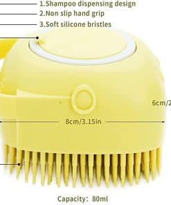 Cepillo de baño y dispensador de champú con diseño de depósito de espuma que te permite ahorrar tiempo y champú al diluirlo previamente para crear más espuma. Fácil de usar, con cerdas suaves que garantizan un masaje sin arañazos para la piel de tu mascota. Fabricado con silicona de grado alimenticio para una experiencia segura y duradera. Adecuado para perros, gatos, cachorros, caballos, conejos y otros animales con piel normal o sensible. Ideal para bañar, quitar pelo y masajear a tus mascotas.