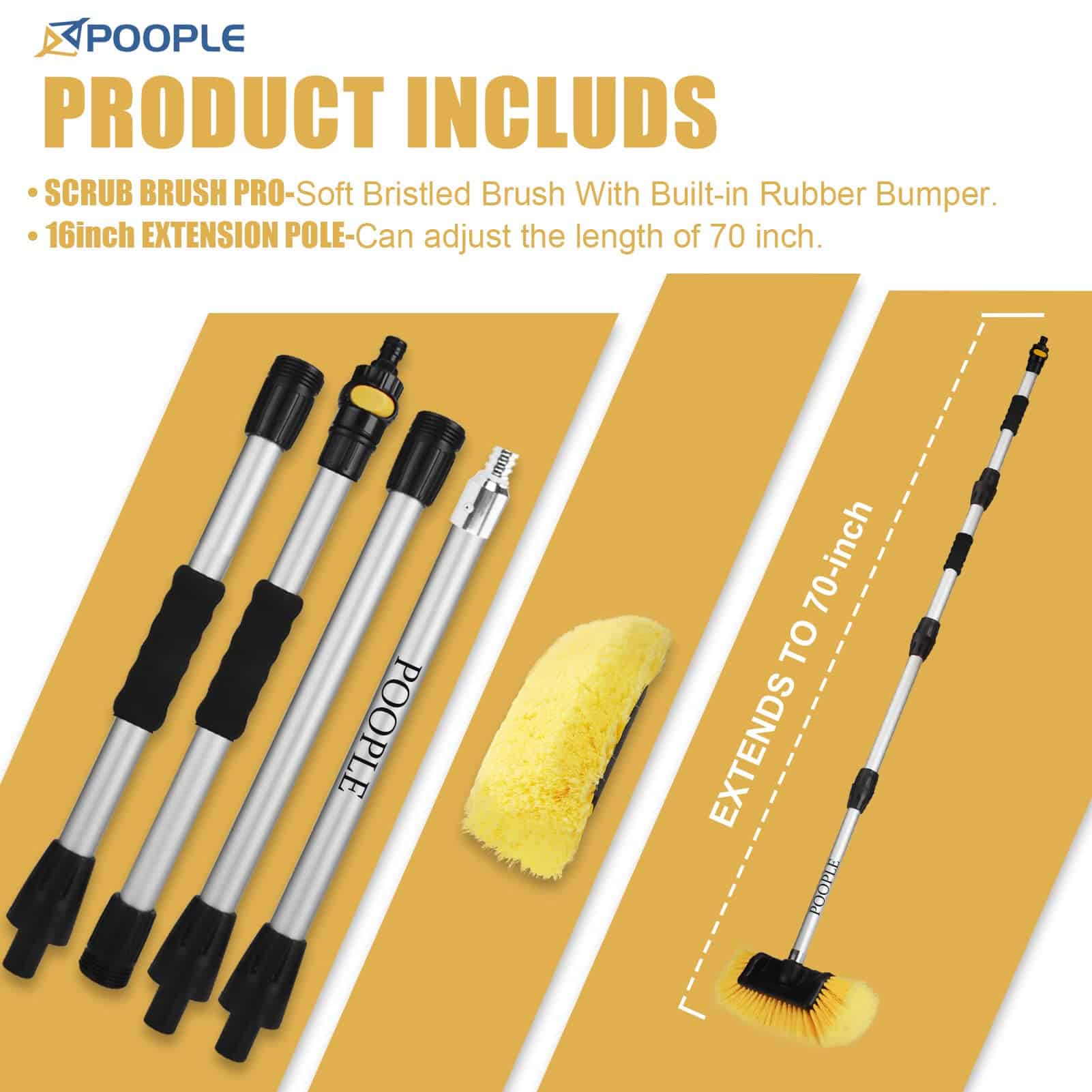 Cepillo de Lavado de Coche POOPLE 72″ con Mango Largo, 12″