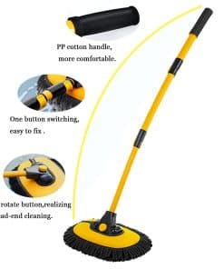 1. Diseño Curvado de 180 grados: A diferencia de la mayoría de los cepillos de lavado de coches con mango recto, la mopa de lavado de coches BMLEI está diseñada con mango curvado, lo que es más ahorrativo en mano de obra, y es fácil para que puedas limpiar el techo del coche. 2. Rotación Flexible y Longitud Ajustable: La barra de aleación de aluminio y la cabeza del cepillo se pueden rotar a voluntad, realizando una limpieza sin puntos muertos. El kit de lavado de coches con diseño de bloqueo ABS es más conveniente, firme y ahorra tiempo para ajustar la longitud de la barra. Puedes ajustar manualmente la longitud de la barra del cepillo de lavado de coches de forma flexible a la longitud deseada entre 21 pulgadas y 41 pulgadas. 3. Suministros Eficientes de Limpieza de Coches: El cepillo de detallado de coches es un ayudante perfecto para lavar, secar, encerar, quitar el polvo y pulir tus vehículos o hogar. Talla única para todos. Hace que la limpieza sea más fácil, rápida y práctica. 4. Kit de Limpieza de Coches que Incluye: 1x mopa de lavado de aluminio con mango largo, 1x cabezal de repuesto de microfibra chenille para mopa de lavado de coches, 1x toalla de lavado de coches de microfibra, 1x manopla para lavado de coches y 1x cepillo de limpieza de ruedas de coche. 5. Buen Valor Dado como un Gran Regalo: – El kit de cepillo de lavado de coches BMLEI es la colección definitiva de herramientas de limpieza de coches. Y es un regalo para proporcionar diversión para los fanáticos y entusiastas de los coches. Cubre todas las herramientas necesarias para limpiar los coches eficientemente y mantenerlos brillantes en coches, RVs, SUVs y camiones.