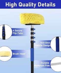 2. Poste telescópico de aluminio: Este cepillo de lavado para autos con mango largo está equipado con un poste telescópico ajustable, lo que hace que este cepillo de limpieza para automóviles sea fácil de ajustar según diferentes necesidades de limpieza. El material de aleación de aluminio de alta calidad garantiza que el poste sea ligero y duradero.