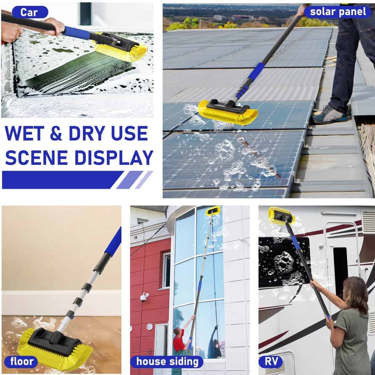 4. Aplicación versátil: Este cepillo de lavado con mango largo es altamente versátil, adecuado para limpiar paneles solares, exteriores de casas, autos, camiones, SUVs, RVs, barcos, cubiertas, pisos y más, manejando fácilmente una amplia gama de tareas de limpieza.