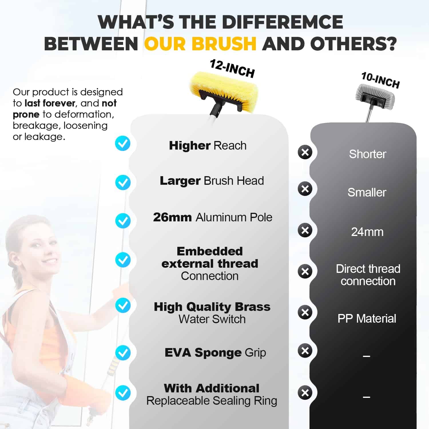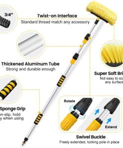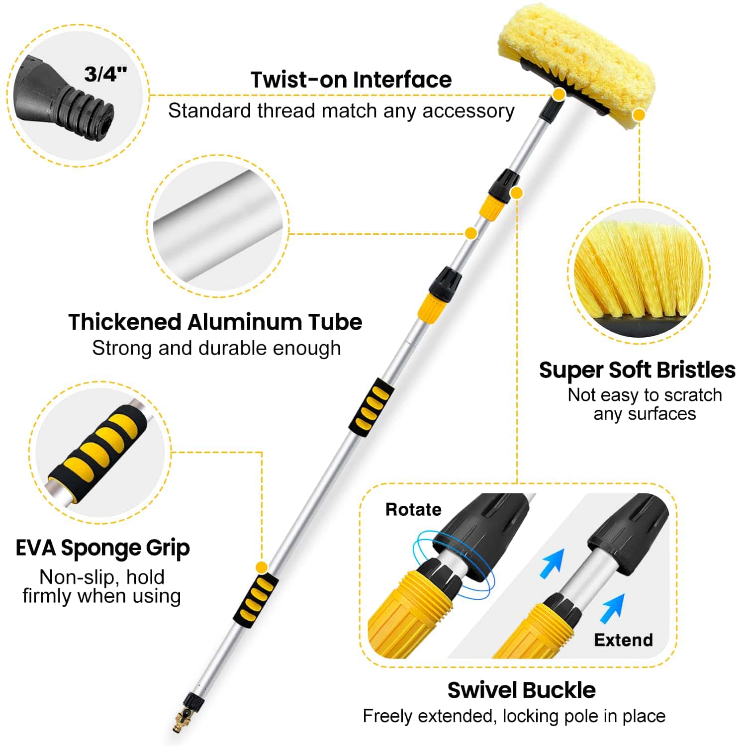 El Cepillo de Lavado para Autos ARTIPOLY de 5-11 Pies es ideal para mantener tu coche, camión, barco, RV o casa limpios y relucientes. Con su mango telescópico ajustable, de 5 a 11 pies, te permite llegar a áreas de difícil acceso sin la necesidad de subir a una escalera, lo que garantiza tu seguridad. Las cerdas súper suaves flocadas protegen la pintura de arañazos, mientras que el diseño en ángulo de 5 lados permite limpiar esquinas y contornos. Con la conexión de manguera y los interruptores adjuntos, es más eficiente y fácil de usar. Este cepillo multifuncional es perfecto para limpiar una variedad de superficies, desde autos y camiones hasta paneles solares y entradas. ARTIPOLY se compromete a brindar el mejor servicio al cliente y productos de calidad para asegurar una experiencia de compra satisfactoria.