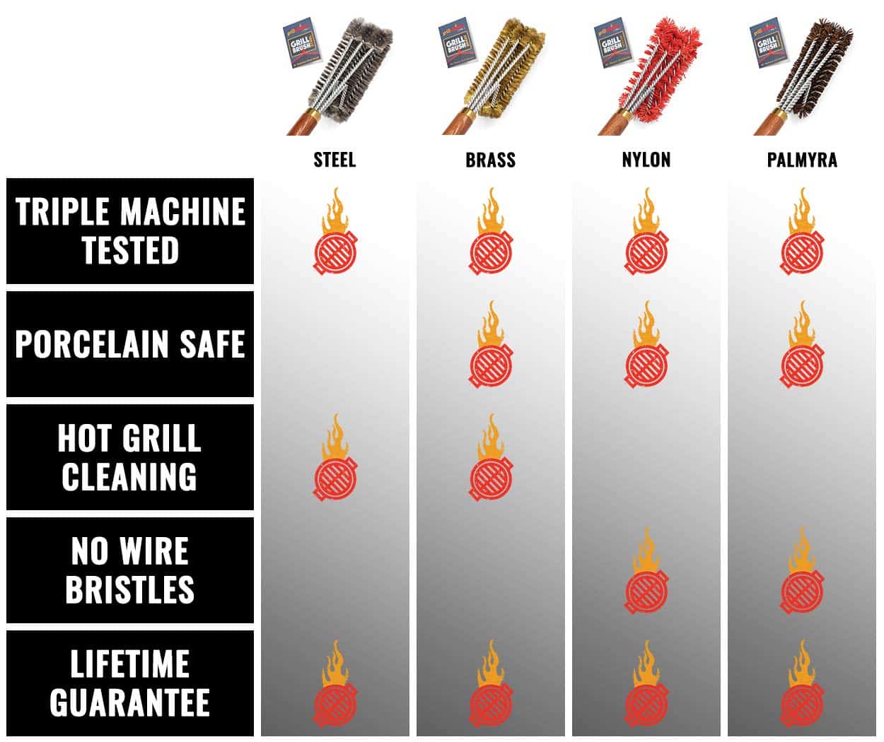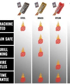1. ¡LOS CEPILLOS SIN CERDAS SIMPLEMENTE NO LIMPIAN TAN BIEN COMO UN CEPILLO CON CERDAS! Entendemos. Quieres una parrilla limpia sin tener que preocuparte por la seguridad de tu familia. Las cerdas son geniales para limpiar tu parrilla, pero son una adición HORRIBLE a tu comida deliciosa a la parrilla. Por eso creamos el Cepillo de Limpieza para Parrilla de Nylon Grillaholics. Nuestra tecnología Cold-Scrub te permite limpiar tus rejillas sin siquiera tener que encender la parrilla.