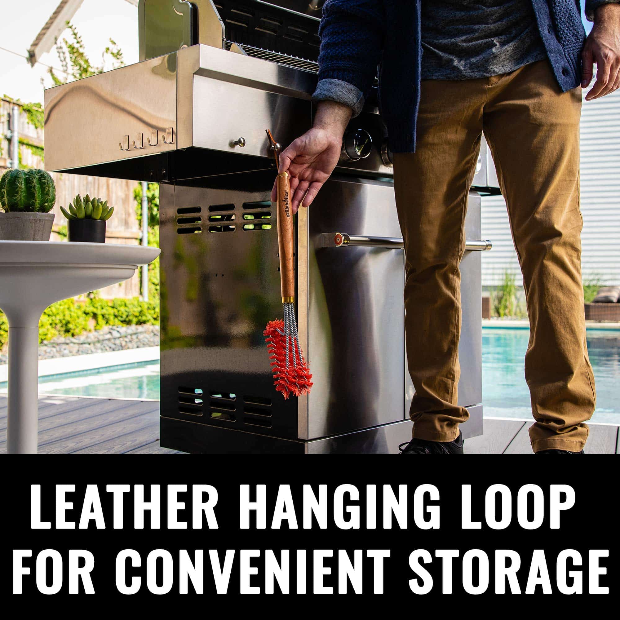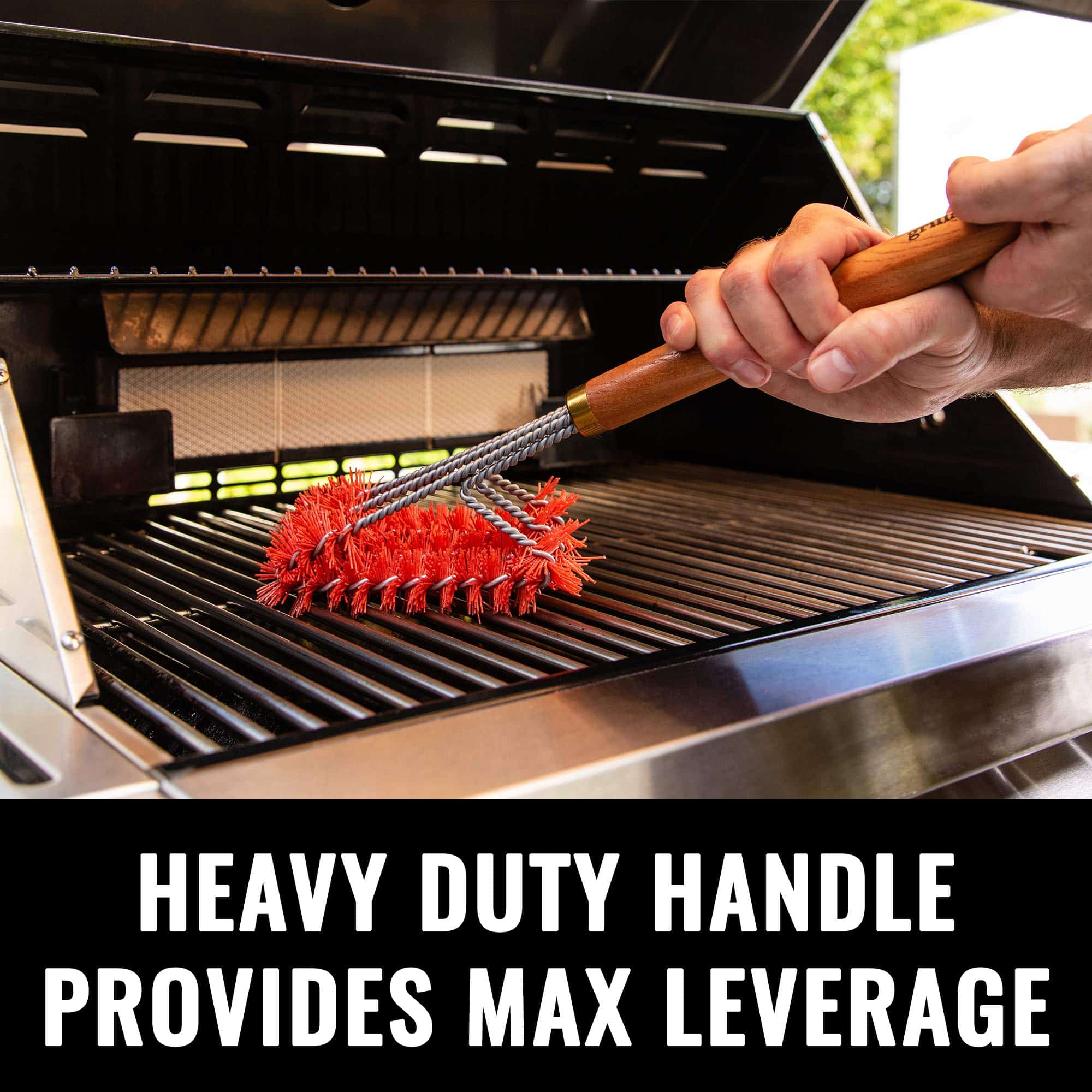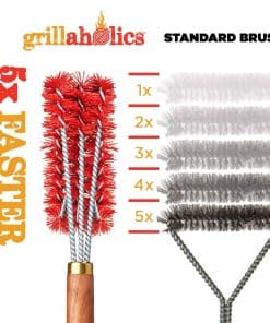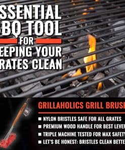 2. SEAMOS HONESTOS. LOS GRILLAHOLICS CONOCEN LOS CEPILLOS PARA PARRILLA. ¡Con más opciones de cepillos para parrillas que cualquier otra empresa de accesorios para parrillas en el mercado, ¿por qué conformarse con algo inferior! Reingenierizado y CONSTRUIDO RESISTENTE, ¡nunca más te preocupes por romper tu cepillo para parrilla! Con 18 pulgadas de longitud, nuestros cepillos son lo suficientemente largos para mantenerte a salvo del calor, pero lo suficientemente fuertes para demoler cualquier alimento quemado con facilidad.