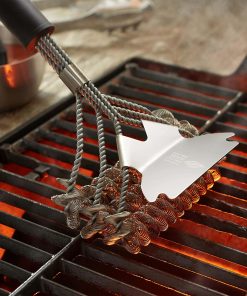 1. Diseño sin cerdas: Este cepillo de parrilla sin cerdas es una alternativa segura a los cepillos de alambre tradicionales con cerdas. El diseño único de este limpiador de rejillas de barbacoa elimina la preocupación de que las cerdas terminen en su comida y arruinen su deliciosa comida. Este cepillo de parrilla es seguro de usar en todas las rejillas de barbacoa.