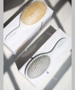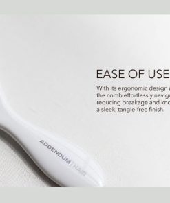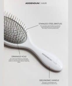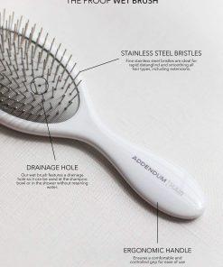 Cepillo de pelo húmedo de lujo con cerdas de acero inoxidable fino y mango ergonómico diseñado por Addendum Hair. Este cepillo desenredante está especialmente diseñado para un desenredado preciso en cabello húmedo sin jalar ni romper. Su mango ligero y equilibrado ofrece un agarre seguro para un peinado suave y sin esfuerzo. Además, cuenta con un agujero de drenaje integrado que evita la acumulación de humedad, lo que lo hace más higiénico y duradero. Adecuado para desenredar cabello liso, ondulado, rizado o grueso, así como para pelucas y extensiones. Su acabado blanco elegante con materiales duraderos garantiza resultados de nivel de salón todos los días.