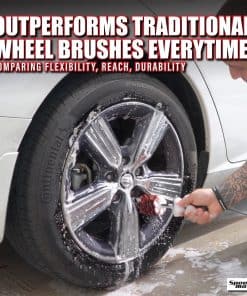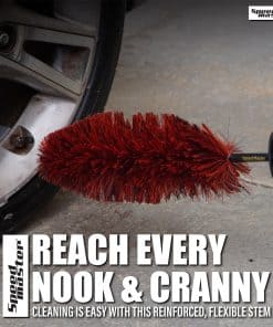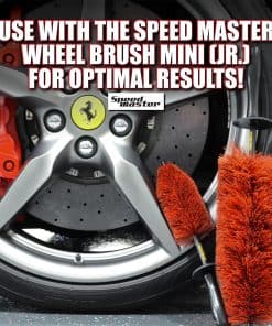 El cepillo de ruedas speed master fue desarrollado para limpiar los diseños de ruedas actuales de manera más efectiva que cualquier otro cepillo en el mercado. El cepillo de ruedas speed master fue fabricado según mis especificaciones exactas, hasta las cerdas rojas de carro de carreras. El cepillo de ruedas speed master tiene un resistente tallo que se dobla para limpiar detrás de los rayos y entre la rueda y la pinza de freno. Las cerdas tienen ligeras plumas en los extremos para limpiar suavemente acabados delicados de ruedas, como ruedas recubiertas o plateadas, sin rayar. Creo que este es el cepillo de ruedas definitivo. Limpia cualquier tipo de diseño y cualquier acabado de rueda con el cepillo de ruedas speed master.