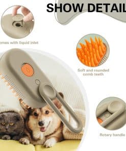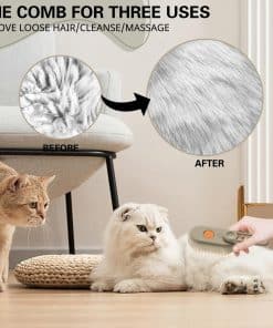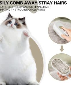 Cepillo de Vapor para Mascotas – La herramienta de aseo definitiva para su querida mascota. Con el Cepillo de Vapor para Mascotas, la limpieza del pelo de las mascotas nunca ha sido tan fácil. Este cepillo innovador no solo recoge eficazmente el pelo de las mascotas, sino que también proporciona una sensación de masaje suave para su amigo peludo. Una característica notable del cepillo de pelo de gato es que se transforma en un cepillo de vapor. Simplemente agregando agua, puede convertir este cepillo de pelo de gato en un potente generador de vapor que ayuda a eliminar los nudos obstinados, dejando el pelaje de su mascota suave y brillante. Diseñado para gatos y perros, el Cepillo de Vapor para Mascotas es ergonómico y cómodo de sostener en la mano, facilitando el aseo de su mascota. Las cerdas son suaves y efectivas para eliminar el pelo suelto, garantizando la comodidad de su mascota. Con el Cepillo de Vapor para Gatos – Cepillo de Pelo de Gato a Vapor 3 en 1, puede evitar los desordenados pelos de mascotas al momento de asearlas, ya que pueden concentrarse en el cepillo de vapor y esperar a que los limpien debido a la niebla de agua. Su diseño eficiente asegura que los pelos recolectados se contengan fácilmente, evitando que se dispersen por su hogar. El cepillo de vapor para gatos también es fácil de limpiar, convirtiéndolo en una herramienta sin problemas para los dueños de mascotas. Elija el Cepillo de Vapor para Mascotas para brindarle a su mascota una experiencia de aseo como ninguna otra. Mantenga el pelaje de su mascota limpio, saludable y hermoso con el poder del vapor. ¡Ordene ahora y disfrute de la conveniencia y los beneficios de un cepillo de vapor para mascotas!