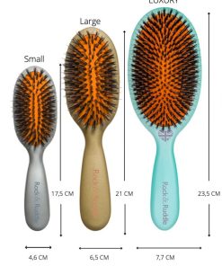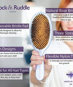 Tener cuidado del cabello es un placer con el cepillo Rock & Ruddle de cerdas de jabalí natural. Cada mechón está equipado con una punta de nylon para un desenredado suave sin puntas abiertas y estimulación del cuero cabelludo. Nuestros cepillos son ideales para desenredar sin dañar el cabello, incluso en cabello normal a grueso. Cada cerda masajea tu cuero cabelludo y se desliza fácilmente por tu cabello, exfoliando, hidratando y acondicionando al distribuir los aceites naturales de tu cuero cabelludo por todo tu cabello, haciéndolo brillante, flexible y saludable. Con diseños exclusivos y únicos, nuestros cepillos naturales son hermosos de ver y cuidan maravillosamente tu cabello, ya sea largo o corto, rizado o liso, grueso o fino. Se desliza suavemente por el cabello mojado o seco, y es perfecto para hombres, mujeres y niños. Nuestros cepillos de calidad de salón han sido diseñados para que puedas quitar las almohadillas de cerdas de goma para limpiar tu cepillo. Simplemente lava las cerdas sumergiéndolas en agua tibia con jabón. ¡Diseñado y hecho en el Reino Unido, un cepillo premium como ningún otro, los cepillos Rock & Ruddle tienen asas ergonómicas y diseños atemporales para el lujo diario y el mimo.