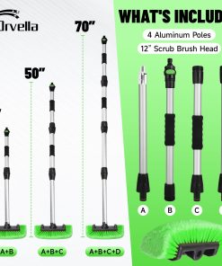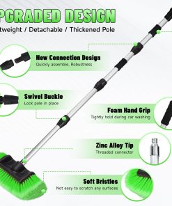 Este cepillo para lavado de autos de 70 pulgadas cuenta con una cabeza de cepillo de 12 pulgadas, que proporciona una mayor cobertura en comparación con los cepillos estándar de 10 pulgadas. Las cerdas suaves limpian de manera efectiva autos, RVs, camiones y barcos sin rayar la superficie, mientras que la cabeza de cepillo más grande ayuda a ahorrar tiempo.