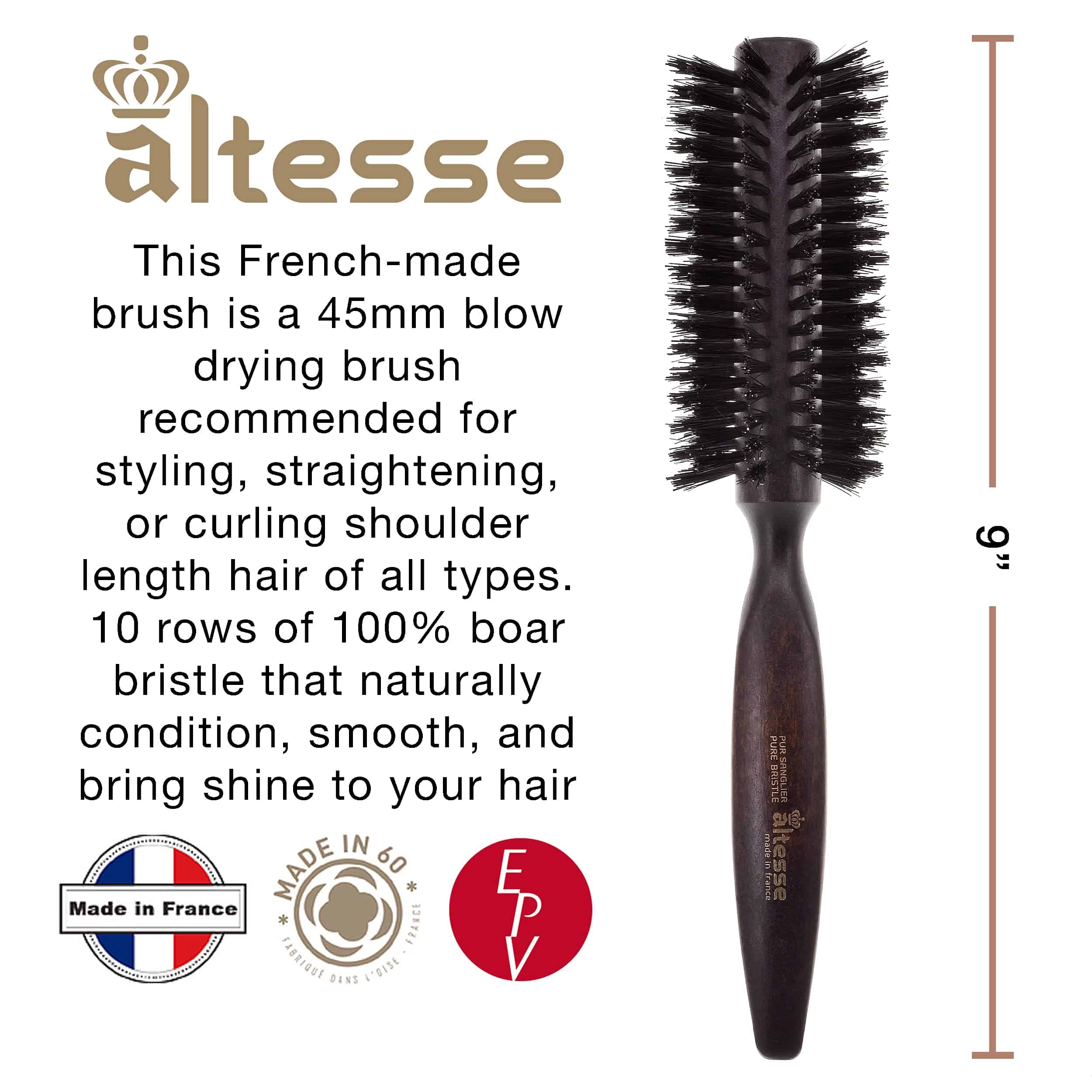 Cepillo Redondo de Cerdas de Jabalí Altesse 1210P para