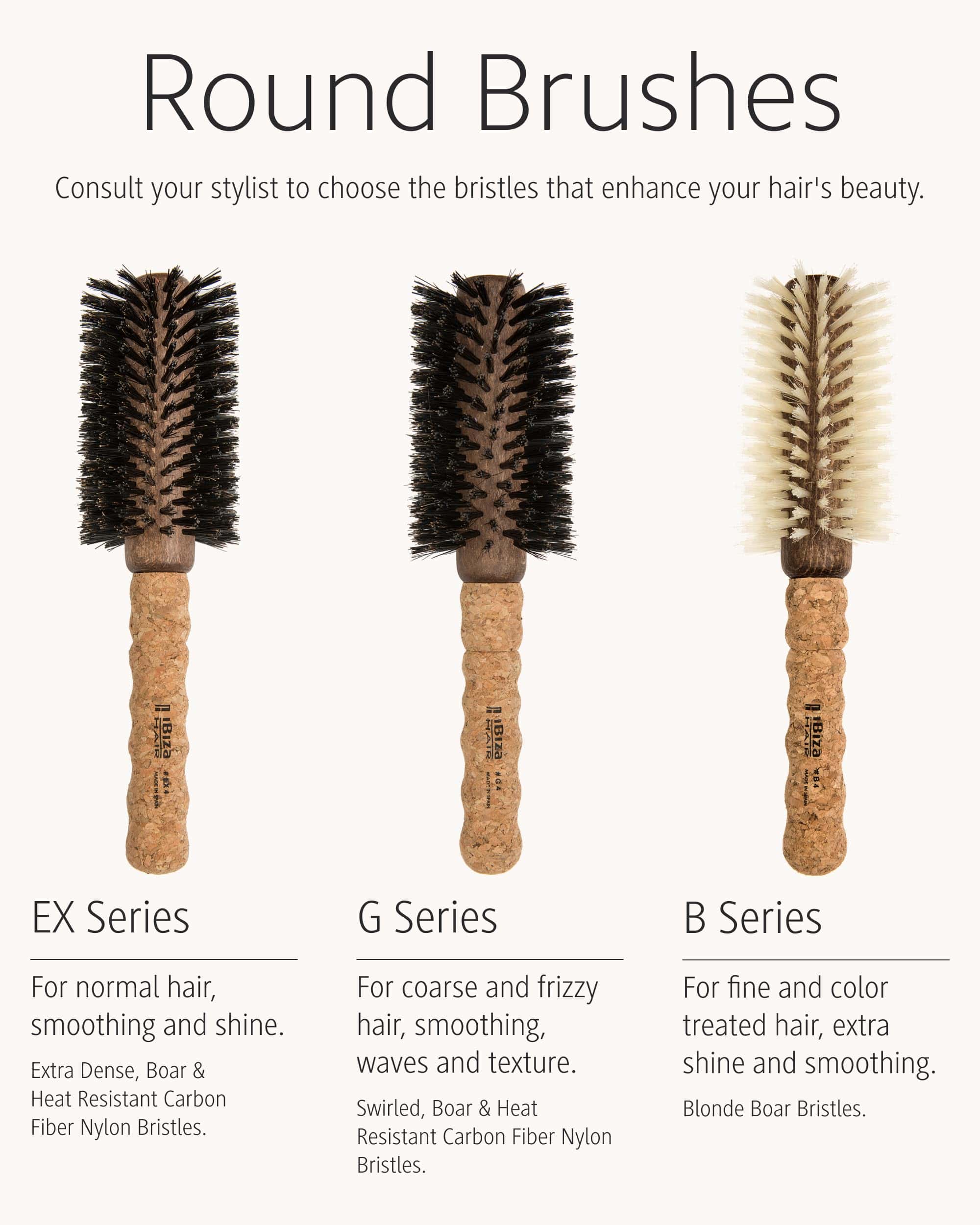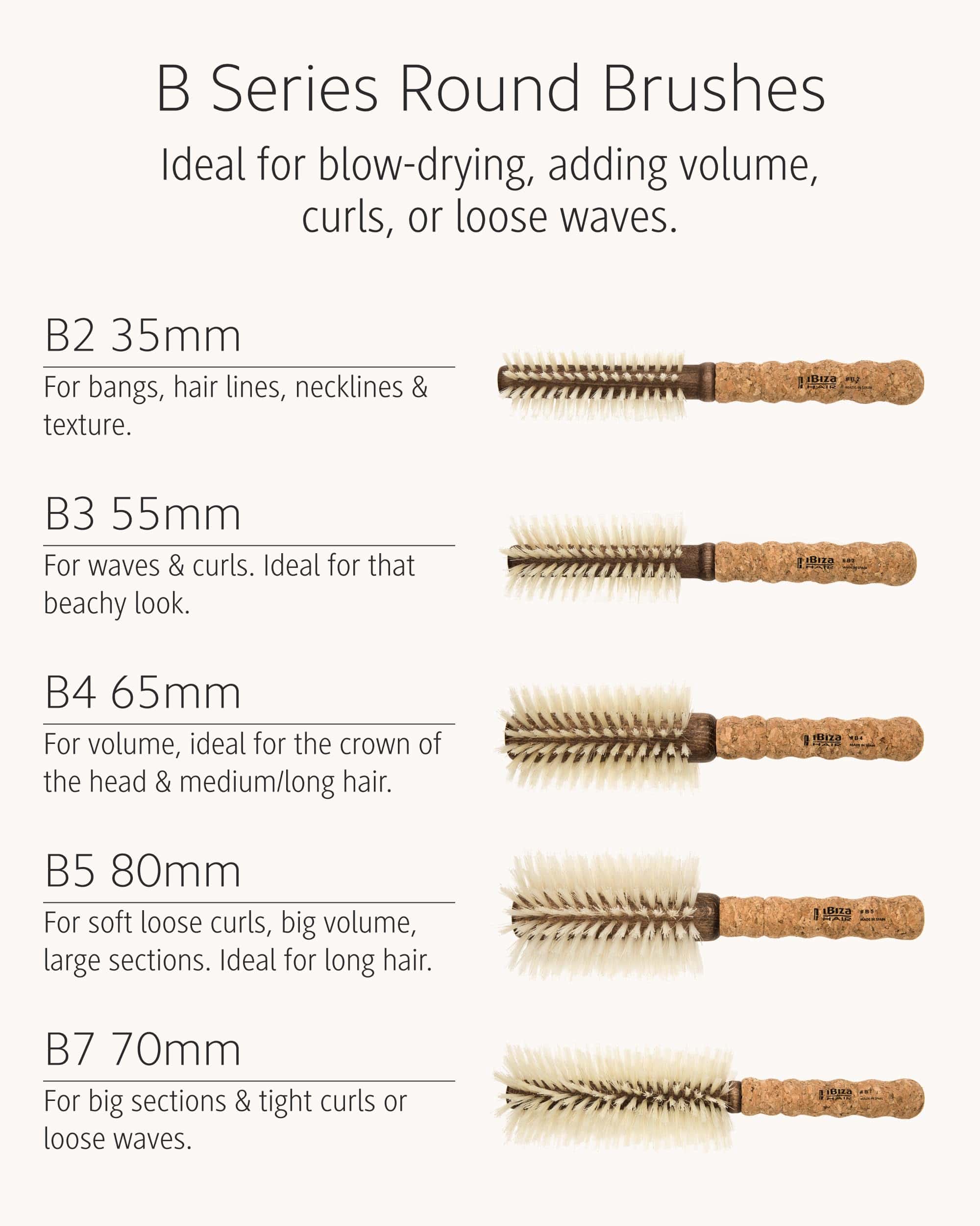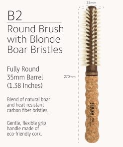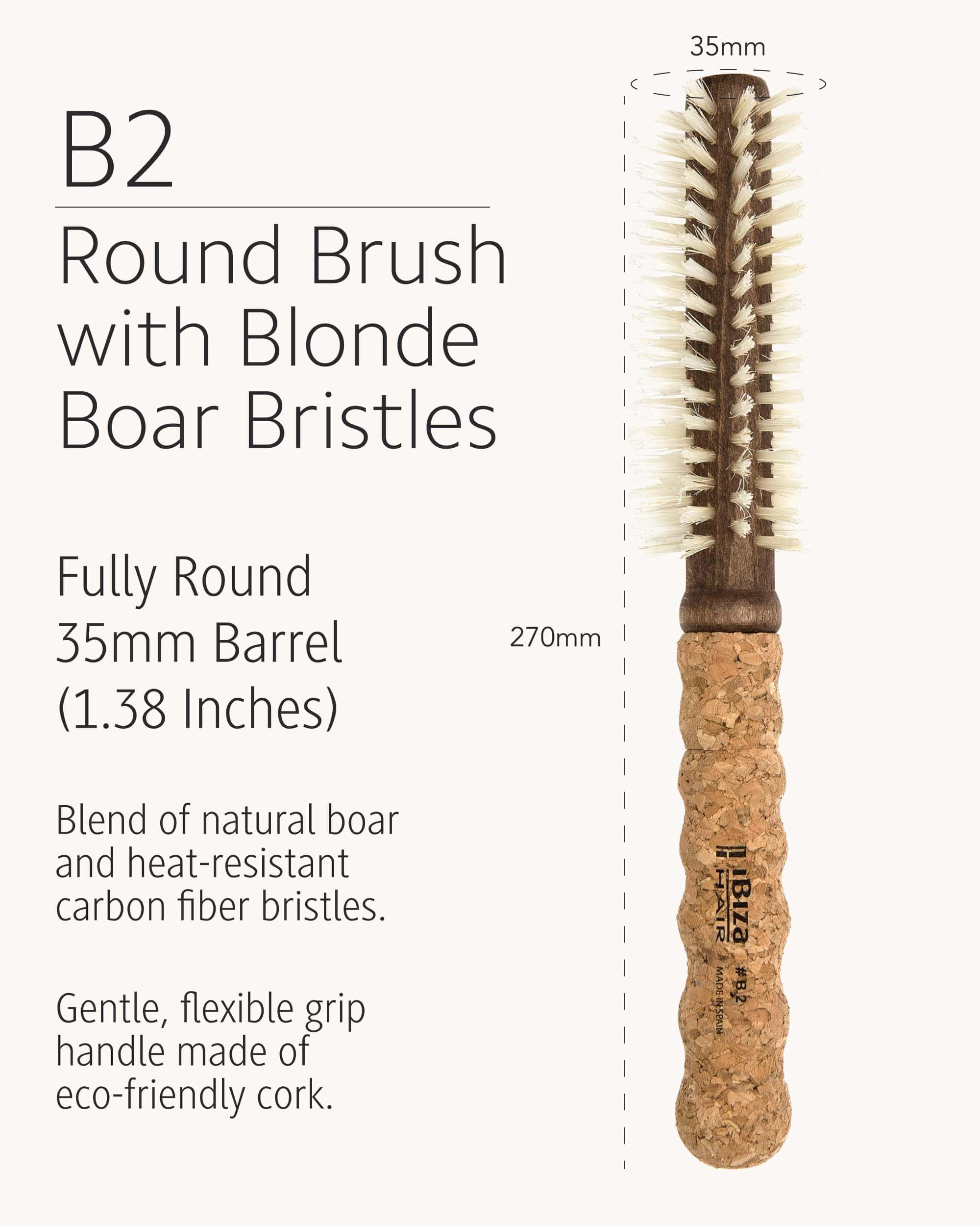 1. B2 / 35mm – Cepillo redondo con cerdas rubias de jabalí / fibra de carbono nylon y mango de corcho extendido.