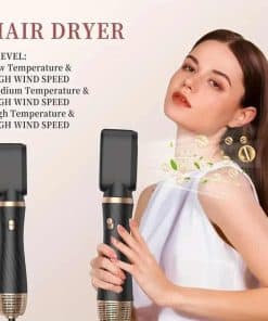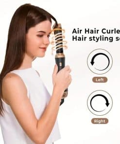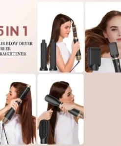 1. KIT MAESTRO DE ESTILO PROFESIONAL 5 EN 1 Este revolucionario sistema de peinado de cabello te empodera para convertirte en tu propio estilista, logrando sin esfuerzo cinco transformaciones de calidad de salón: secado rápido al aire, rizos juguetones, alisado elegante, estilismo voluminoso y secados precisos. El set premium incluye accesorios intercambiables: boquilla inteligente de secado rápido, barriles rizadores giratorios bidireccionales, peine alisador con recubrimiento nano, cepillo redondo voluminizador, con un guante profesional resistente al calor incluido. Todos los componentes están elegantemente almacenados en un estuche diseñado a medida, acompañados de un manual de usuario ilustrado para crear estilos de alfombra roja en cualquier momento y lugar.