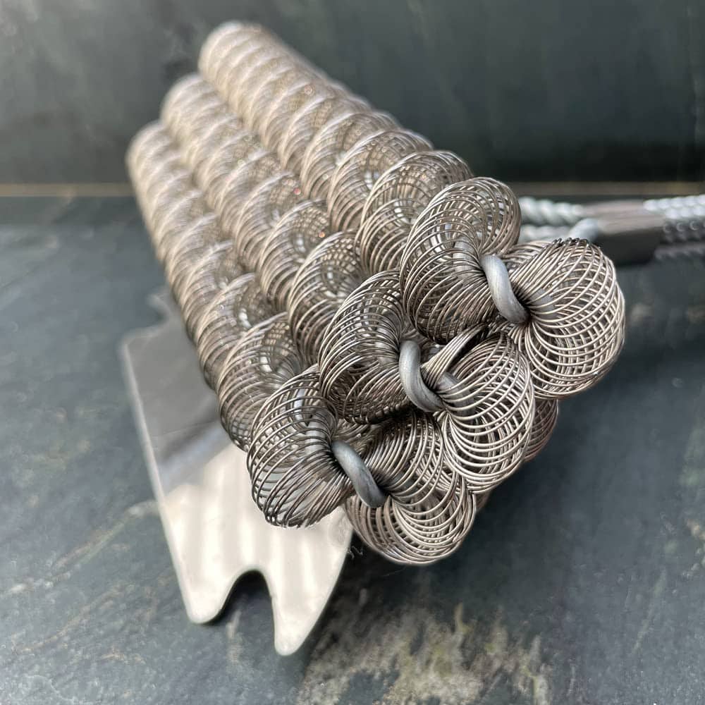 Cepilla tu parrilla de forma segura y eficiente con nuestro Cepillo y Rascador para Parrilla, el mejor accesorio sin cerdas para la limpieza de todos los tipos de parrillas. Construido con acero inoxidable de alta calidad, este cepillo garantiza durabilidad y longevidad en cada uso. Olvídate de lidiar con cerdas de metal afiladas en los viejos cepillos tradicionales, ya que nuestro cepillo viene con una alternativa de alambre espiral que es más segura. El mango grueso te proporciona un mejor control mientras limpias tu parrilla, y la amplia cabeza del cepillo de 6.5 pulgadas te permite ahorrar tiempo y energía en cada frotado. Además, el diseño duradero con mango resistente y gran cabeza de cepillo brinda comodidad y control durante su uso. No hay necesidad de preocuparte por el mantenimiento de tu parrilla cuando tienes nuestro Cepillo y Rascador para Parrilla a tu disposición. ¡Haz que la limpieza de tu parrilla sea más fácil y segura con este increíble accesorio!