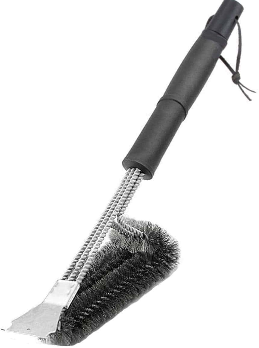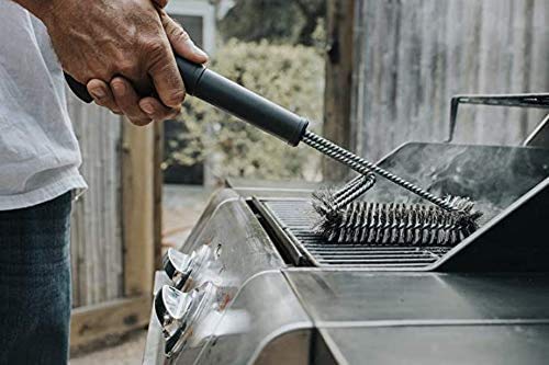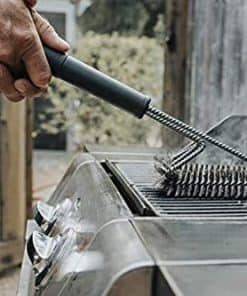 El cepillo y raspador para parrilla Duke Grills Omaha es un cepillo y raspador de parrilla de 3 puntas resistente que está diseñado para limpiar su parrilla de manera más rápida y con menos esfuerzo. Las cerdas seguras y sin rayones pueden raspar su parrilla limpiamente mientras que el raspador de acero inoxidable hace que sea más fácil quitar la suciedad carbonizada. Este cepillo para barbacoa es apto para lavavajillas. La correa de cuero facilita el almacenamiento. Las cerdas sin rayones también hacen de este un excelente cepillo para parrilla de ahumador para Traeger, Green Egg y otras marcas. El cepillo y raspador para parrilla Duke Grills Omaha viene con un.