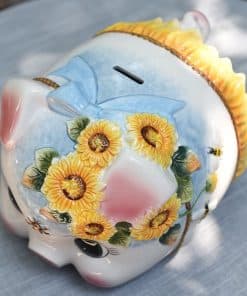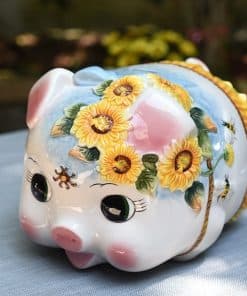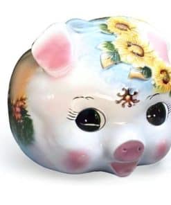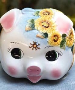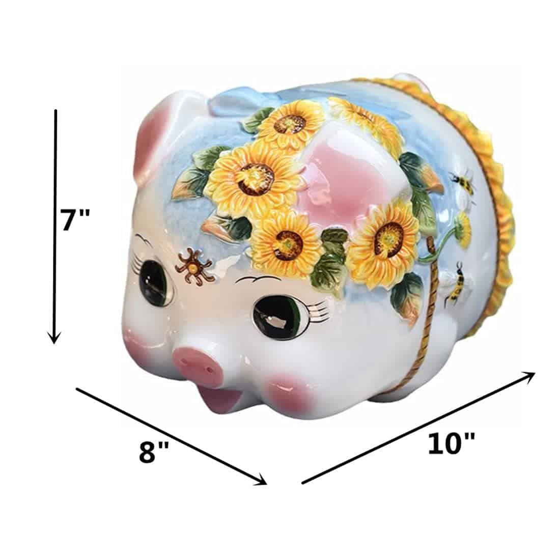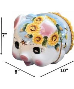 Este cerdo alcancía de cerámica grande para niña es el regalo perfecto para enseñarle a tu hija la importancia del ahorro. Hecho de cerámica dolomita de alta calidad, este alcancía es seguro y no tóxico. Con dimensiones de 10 pulgadas de largo, 8 pulgadas de ancho y 7 pulgadas de alto, este cerdo alcancía es gigante y adorable. Cada pieza está terminada a mano por nuestros expertos artesanos, lo que le da un toque de artesanía único. Comienza a ahorrar de manera divertida y creativa con esta bonita alcancía con diseño de girasol pintado a mano.
