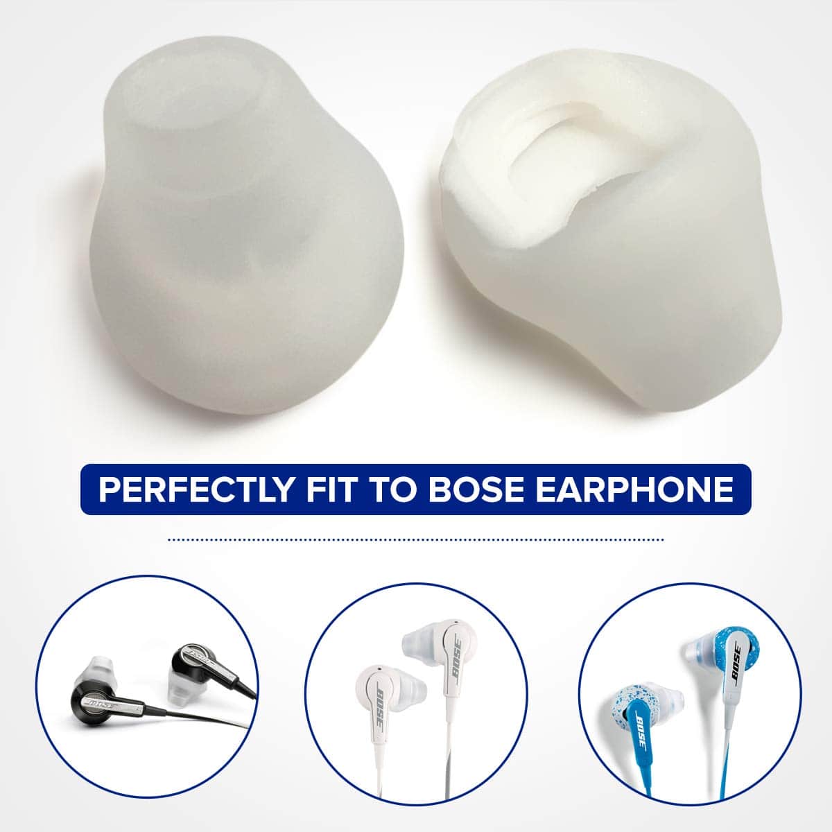 Material: hecho de silicona suave y cómoda lavable de alta calidad, 100% nuevo de alta calidad. Cada paquete incluye 3 pares de tapas de repuesto de silicona en tamaños pequeño, mediano y grande para auriculares Bose In-Ear. Estas tapas son lavables y garantizan un ajuste cómodo y seguro para disfrutar de tu música favorita con la mejor calidad de sonido. Renueva tus auriculares con estas tapas de repuesto de alta calidad.