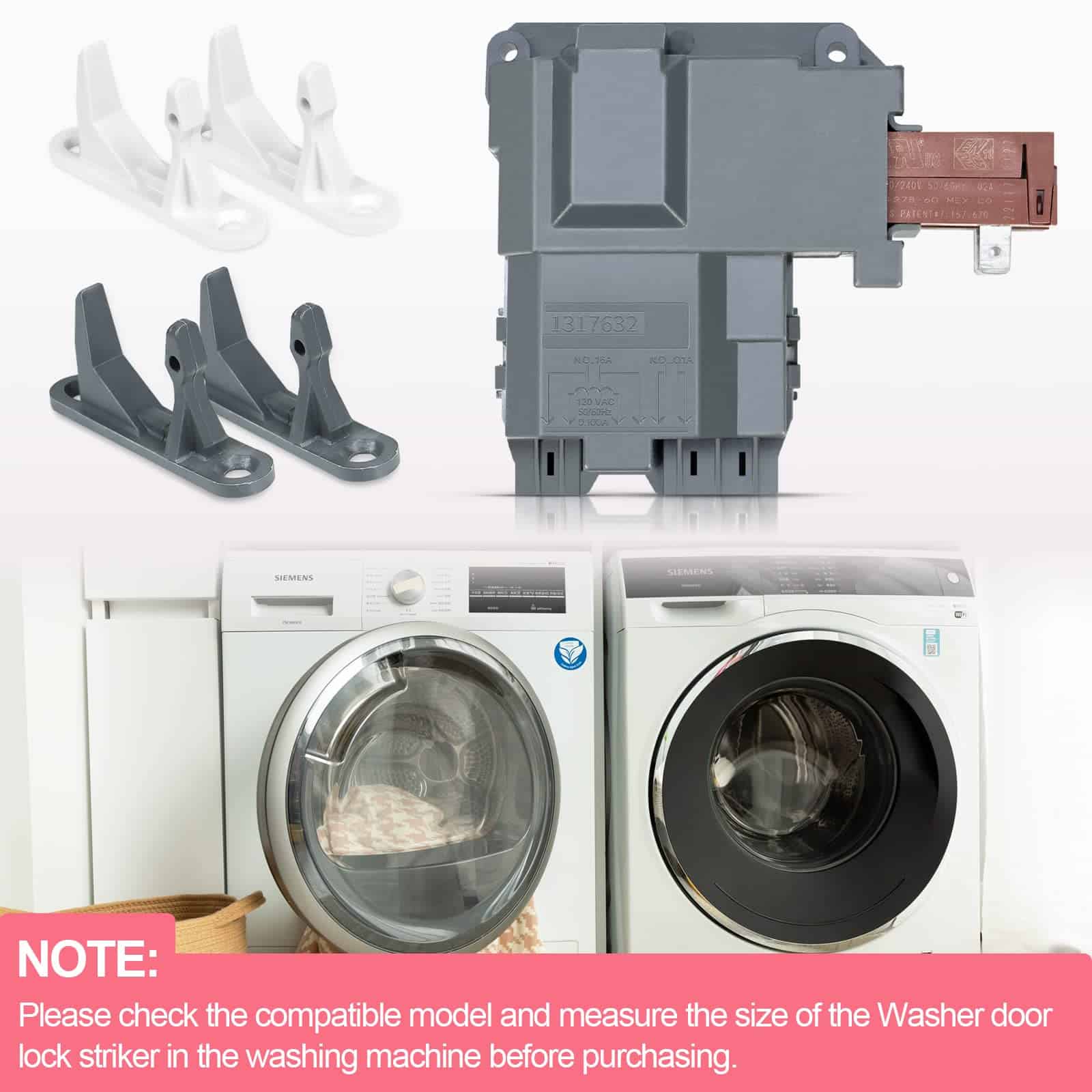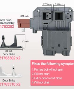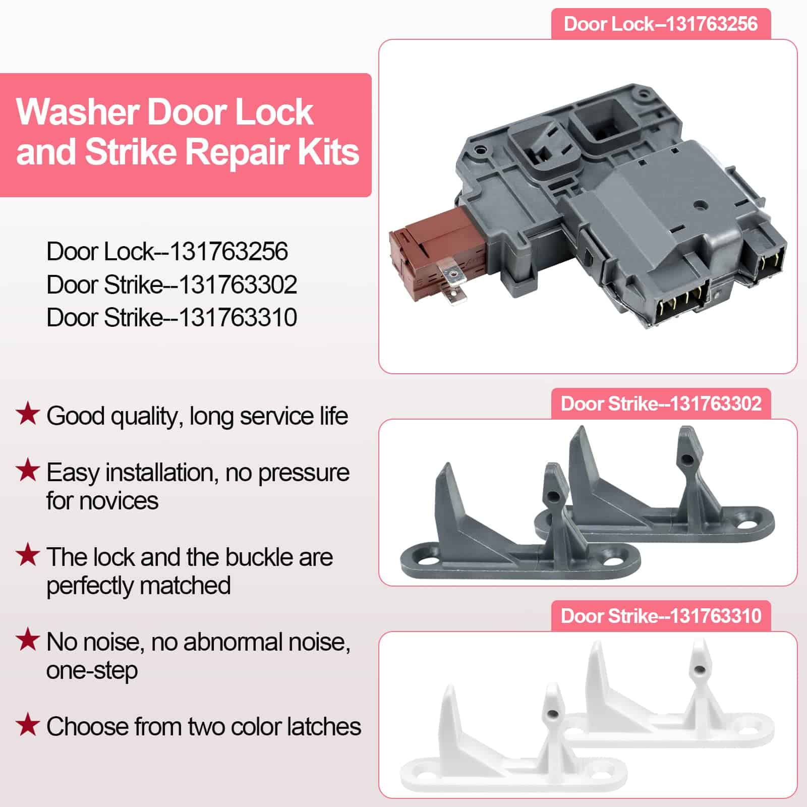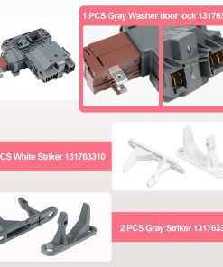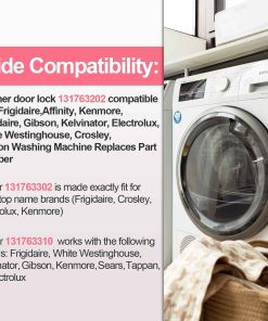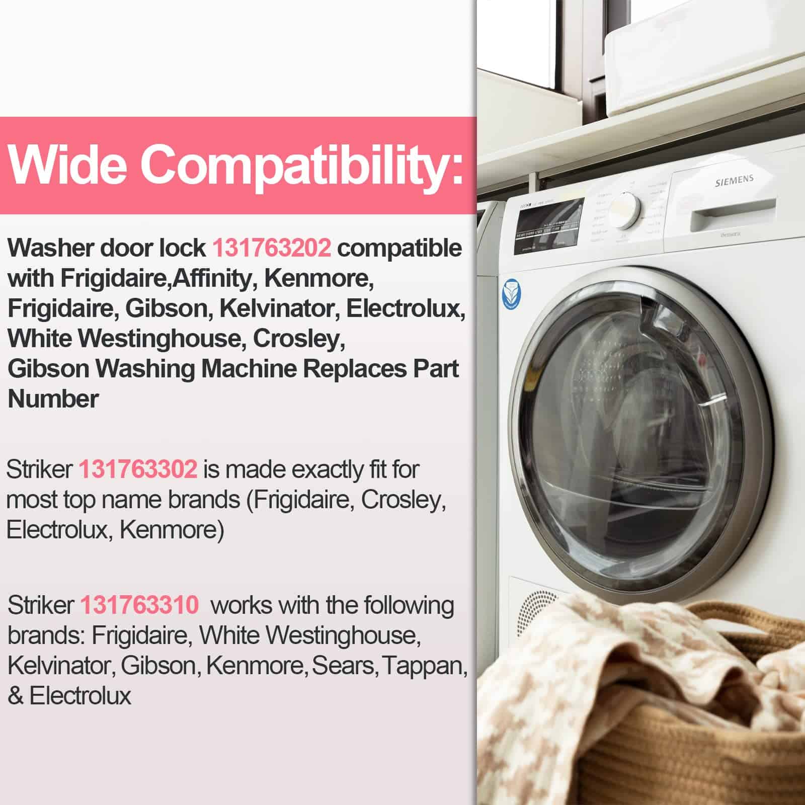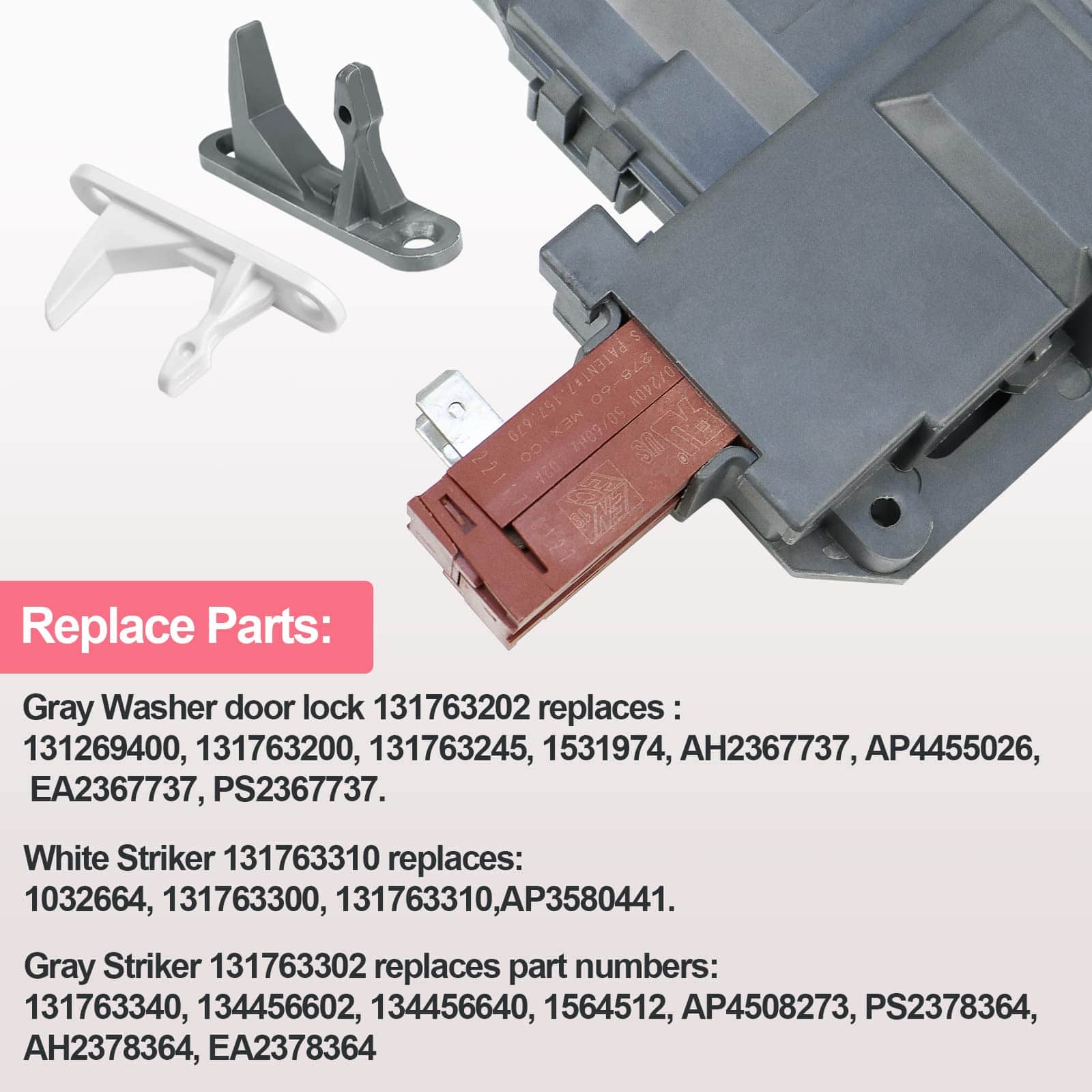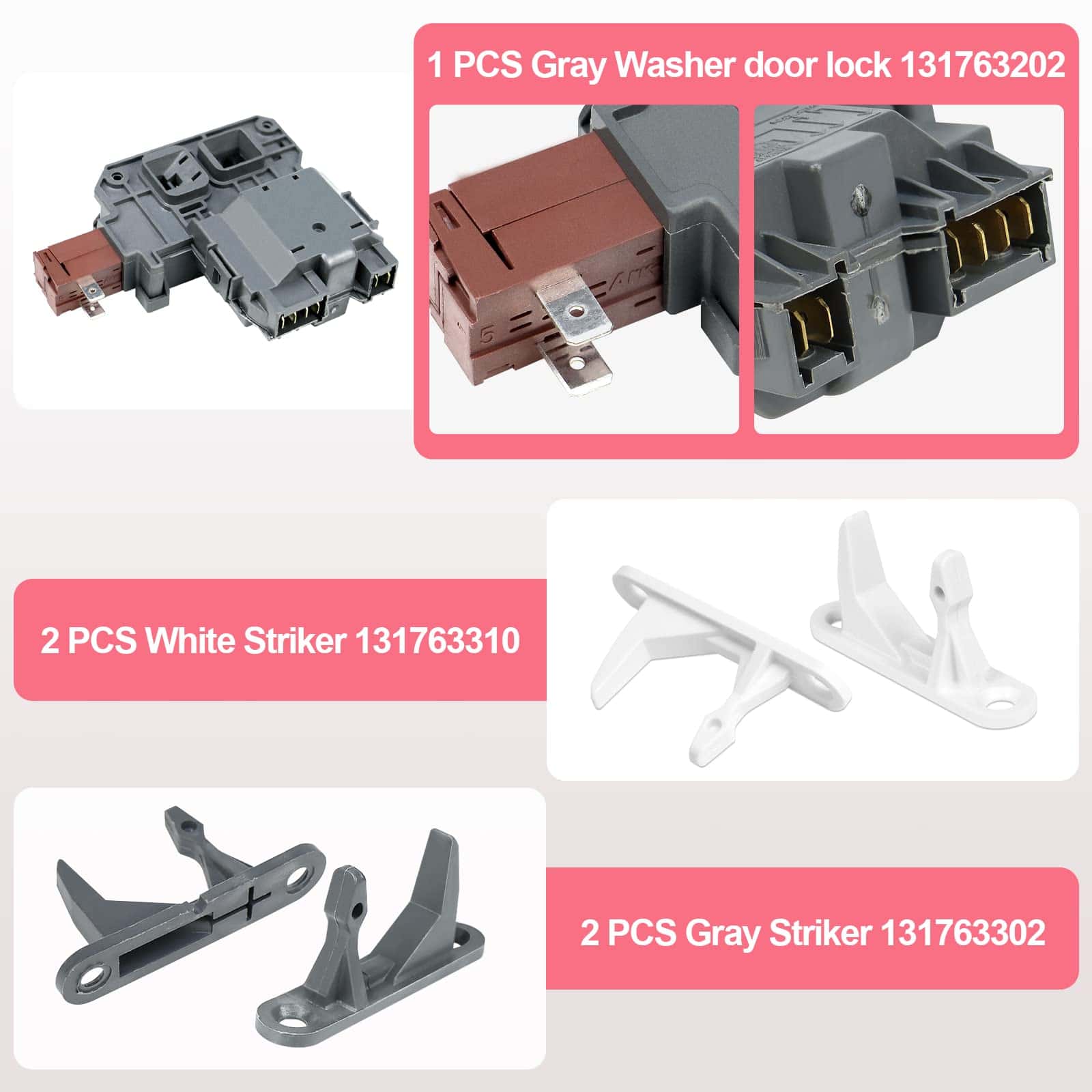 Cerradura Bloqueo de Puerta de Lavadora 131763256 Actualizada con Pestillo de Puerta 131763202 131763310. Compatibilidad con Frigidaire Affinity, Kenmore, Whirlpool, Electrolux, Gibson, Kelvinator, Crosley, Westinghouse Máquina Lavadora. Esto es Cerradura Bloqueo de Puerta de Lavadora 131763256 con Piezas de Reemplazo 131763202 Compatible con Frigidaire, Affinity, Kenmore, Electrolux, Crosley, Westinghouse Lavadora y Secadora de Carga Frontal. Reemplaza Número de Parte: AP6285657, PS2367737, EAP2367737, 131763256, 131763202, 131269400, 131763200, 131763245, 131763255, 4547033. Esto es Pestillo de Puerta de Lavadora 131763310 con Piezas de Reemplazo Compatible con Frigidaire Affinity, Kenmore, Electrolux, Crosley, Westinghouse Lavadora de Carga Frontal. Reemplaza Número de Parte: AP3580441, PS890617, EAP890617, 131763310, 134456600, 131763300, 1032664. Esto es Pestillo de Puerta de Lavadora 131763302 con Piezas de Reemplazo Compatible con Frigidaire Affinity, Kenmore, Electrolux, Crosley, Westinghouse Lavadora de Carga Frontal. Reemplaza Número de Parte: AP4508273, PS2378364, EAP2378364, 131763302, 131763340, 134456602, 134456640, 1564512. Soluciona los siguientes síntomas: No enciende No drena Bombea pero no gira Ruido inusual El temporizador no funciona No se llena de agua La tapa o puerta no cierra La tapa o puerta no se abre Paquete Incluye: 1 Cerradura Bloqueo de Puerta de Lavadora 131763202 2 Pestillos de Puerta de Lavadora 131763302 2 Pestillos de Puerta de Lavadora 131763310. Ofrecemos 18 meses de garantía y aseguramos el mejor servicio.