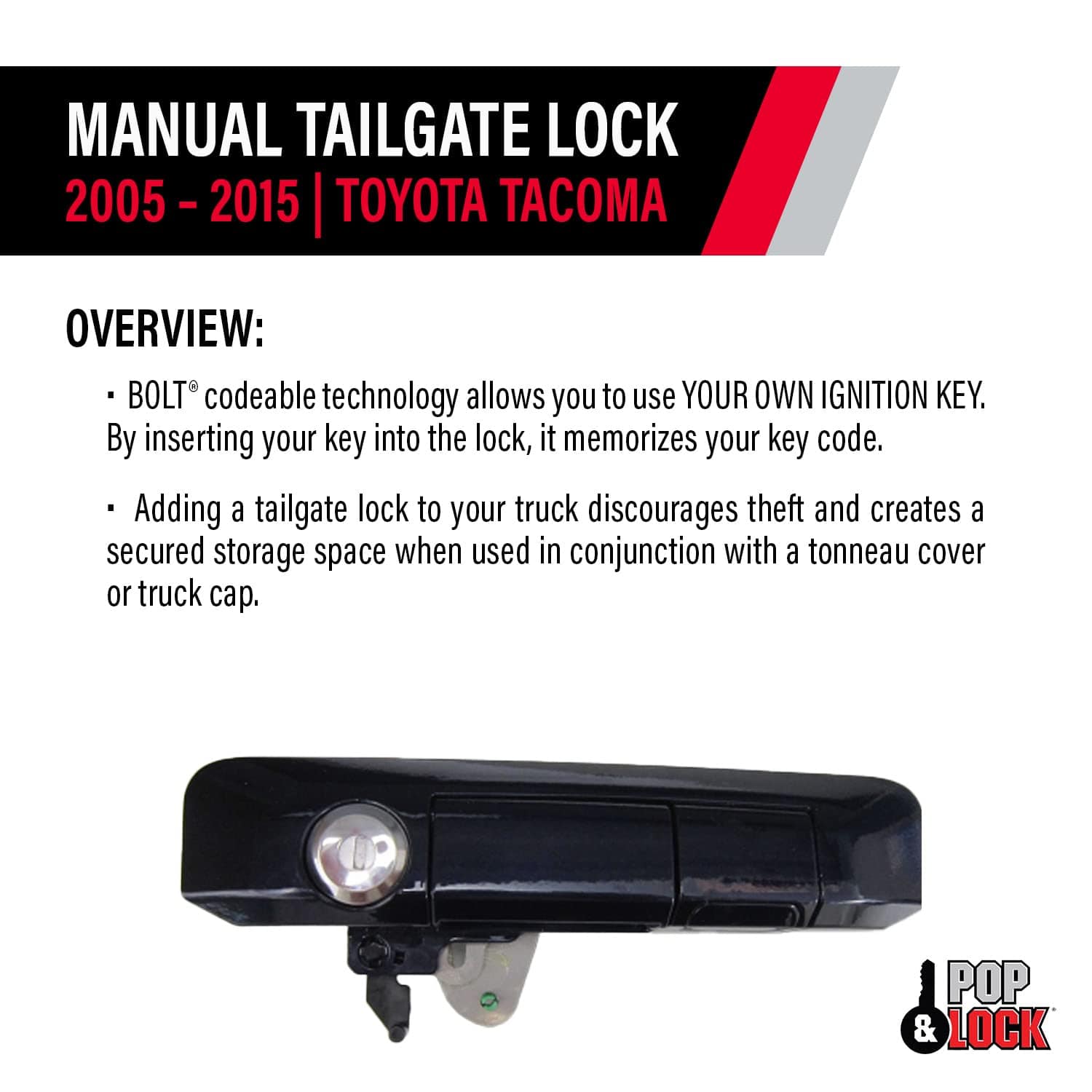 Pop & Lock es el líder mundial en productos de seguridad para colas diseñados para proteger su cola y contenidos de ser robados. Reemplazar su cola puede costar miles de dólares, sin mencionar sus objetos de valor almacenados en la cama de la camioneta. Las cerraduras de cola de Pop & Lock son el complemento perfecto para una cubierta de tono, capucha de camioneta, toldo o carpa. Están diseñadas para ser fáciles de instalar y dar a su camioneta un aspecto de fábrica. Ofrece una variedad de productos diseñados para adaptarse a cientos de aplicaciones de camiones.
