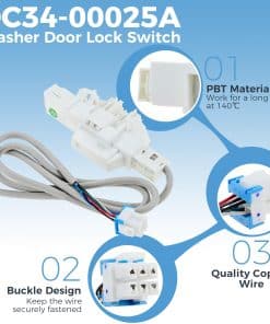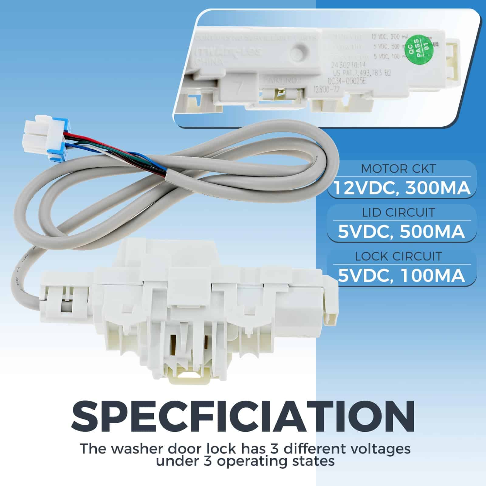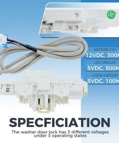 La cerradura de la puerta para lavadora MOOTVGOO DC34-00025A es un reemplazo ideal para lavadoras Samsung. Compatible con múltiples números de pieza e modelos de lavadoras Samsung, esta cerradura garantiza que la tapa no se abra durante los ciclos de lavado y centrifugado. Con 3 voltajes distintos en 3 estados de funcionamiento específicos, DC34-00025C es una opción confiable para mantener la seguridad y el funcionamiento adecuado de tu lavadora. Este paquete incluye 1 cerradura de puerta DC34-00025A DC34-00025C DC34-00025E para lavadoras Samsung, y nuestro equipo de atención al cliente está disponible para responder cualquier pregunta que tengas.