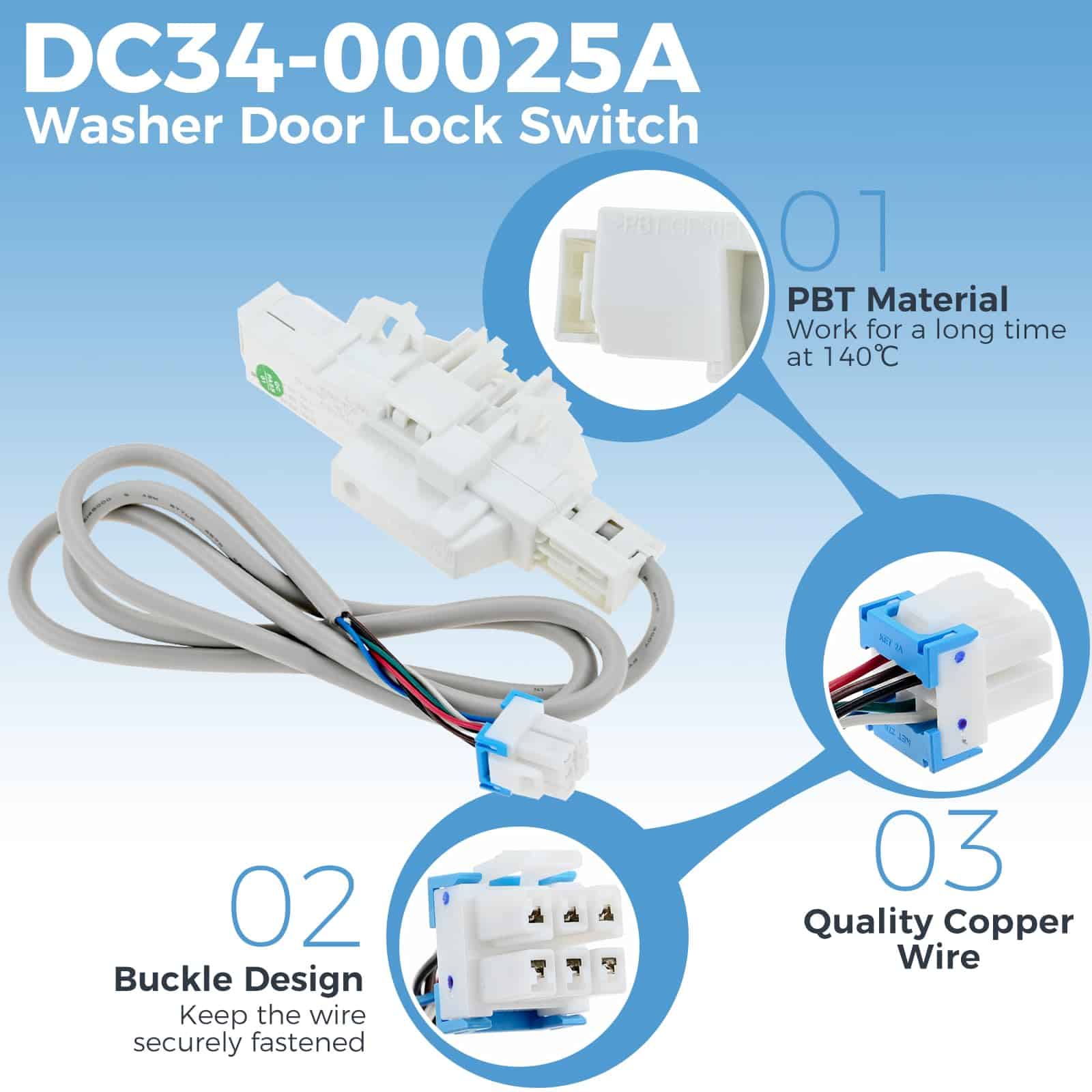 Cerradura de Puerta para Lavadora MOOTVGOO DC34-00025A,