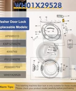 La Cerradura de Puerta para Lavadora Upgrade WH01X29528 es compatible con las lavadoras ge y puede reemplazar los modelos AP6985313, EAP12749276, 4958749, PS12749276, PD00060769, WH01X29528. Esta cerradura de puerta OEM de alta calidad viene de la fábrica original y tiene una garantía de 3 años. Asegúrese de verificar cuidadosamente la compatibilidad con su modelo antes de realizar la compra. La cerradura de puerta WH01X29528 puede utilizarse en una amplia gama de lavadoras ge, como GFW510SCN0WW, GFW510SCN1WW, GFW510SCN2WW, GFW510SCN3WW, GFW510SCN4WW, GFW510SCN5WW, GFW510SCV0WW, GFW550SPN0DG y muchos más. Si tiene alguna pregunta sobre la compatibilidad con su lavadora, no dude en contactarnos antes de realizar su pedido. Además, la cerradura de puerta WH01X29528 puede ayudar a solucionar problemas comunes como la imposibilidad de abrir o cerrar la puerta de la lavadora, códigos de error relacionados con la cerradura de la puerta, envejecimiento o atasco de la cerradura debido al uso prolongado, o desgaste o rotura debido a una operación incorrecta. En caso de insatisfacción con la calidad del producto, ofrecemos la posibilidad de cambio o reembolso dentro de un plazo de 1 año. Nuestro objetivo es brindar un servicio excepcional y resolver cualquier problema que pueda surgir durante su experiencia de compra.