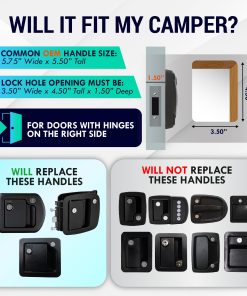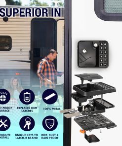 1. NUEVA TECNOLOGÍA 2024 CLASS C SIN LLAVE: Mientras que OTRAS CERRADURAS DE PUERTA RV SIN LLAVE SON endebles y están hechas de plástico, nuestra NUEVA Cerradura de Puerta RV de metal ahora es MÁS LIGERA y FUERTE que antes. La nueva TECNOLOGÍA RESISTENTE AL AGUA permite que nuestras cerraduras soporten lluvias y humedad extrema. Los BOTONES ILUMINADOS EN LA PARTE TRASERA permiten una entrada fácil de noche o en la oscuridad. Permítanos asegurar sus objetos de valor y AYUDARLE A VIAJAR SIN PREOCUPACIONES CON SUS SERES QUERIDOS. 2. CADA KIT LLEGA LISTO PARA INSTALAR E INCLUYE 1x Cerradura de Puerta RV, 2x Mandos a distancia, Baterías AA, 4x Llaves mecánicas, Junta de sellado adicional, Destornillador, Superposición de teclado adicional, Hardware de montaje y Manual del propietario/Guía de instalación. ¡INSTÁLELO EN 10 MINUTOS! Todo respaldado al 100% por nuestro Soporte en línea 24/7. ASEGÚRESE DE QUE LAS DIMENSIONES DE NUESTRA CERRADURA SE AJUSTEN A SU APLICACIÓN. 3. Nuestra Cerradura de Puerta RV CLASS-C está diseñada teniendo en cuenta la DURABILIDAD. Los SONIDOS DE PITIDO son completamente AJUSTABLES para ser TAN FUERTES O TAN SILENCIOSOS como usted desee. SE AJUSTA A LA MAYORÍA DE LAS CLASS-C con una ABERTURA DE CERRADURA DE 3.50″ de ancho x 4.50″ de alto x 1.5″ de grosor. INCLUIMOS VARIOS ELEMENTOS ADICIONALES en nuestro KIT COMPLETO para AHORRARLE DINERO Y TIEMPO. ¡Verifique la compatibilidad con su remolque antes de comprar! 4. LAS LLAVES SON ÚNICAS para la marca LATCH.IT. Diga adiós a las llaves COMPARTIDAS de TODAS LAS DEMÁS MARCAS y a las llaves tradicionales CH751. ¡Hemos desarrollado MILES de patrones de LLAVES ÚNICAS HECHAS EXCLUSIVAMENTE PARA las cerraduras LATCH.IT! ¡Nunca más se preocupe por su seguridad en su RV o camper, nosotros le respaldamos! 5. SOMOS UNA PEQUEÑA EMPRESA FAMILIAR DE PROPIEDAD ESTADOUNIDENSE EN FLORIDA QUE OFRECE LA POLÍTICA DE REEMPLAZO DE POR VIDA MÁS FUERTE DEL MERCADO. Nos enorgullecemos de la CALIDAD Y EL RENDIMIENTO de nuestros productos. Compre con confianza y disfrute de nuestra POLÍTICA DE REEMPLAZO. ¡NUESTRA MISIÓN ES PROPORCIONARLE LOS PRODUCTOS QUE USTED MERECE! 6. ¿TIENE UNA CASA RODANTE O REMOLQUE DE VIAJE? Esta NO ES LA CERRADURA PARA USTED. En su lugar, compre nuestra NUEVA Y PATENT PENDING Cerradura de Puerta RV Sin llave APEX (ASIN: B0BVGSYDXB)