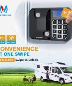 Cerrar y abrir tu puerta nunca ha sido tan fácil con la Cerradura de Puerta para RV RL100 de MICTUNING. Ya sea con Llave mecánica, Llave NFC, Llavero o Contraseña, ¡lo que necesites, lo tenemos! La seguridad es nuestra máxima prioridad, por lo que nuestra cerradura está equipada con características de seguridad mejoradas para mantener tus pertenencias seguras en todo momento. ¿Temor a ruidosas interrupciones durante tu sueño de belleza? ¡No te preocupes! Nuestra cerradura cuenta con un práctico modo de sueño que garantiza que puedas dormir sin ninguna molestia. Es hora de llevar la seguridad de tu RV al siguiente nivel y emprender tus viajes con total tranquilidad. ¡No esperes más, adquiere hoy mismo la increíble Cerradura de Puerta para RV RL100 de MICTUNING!