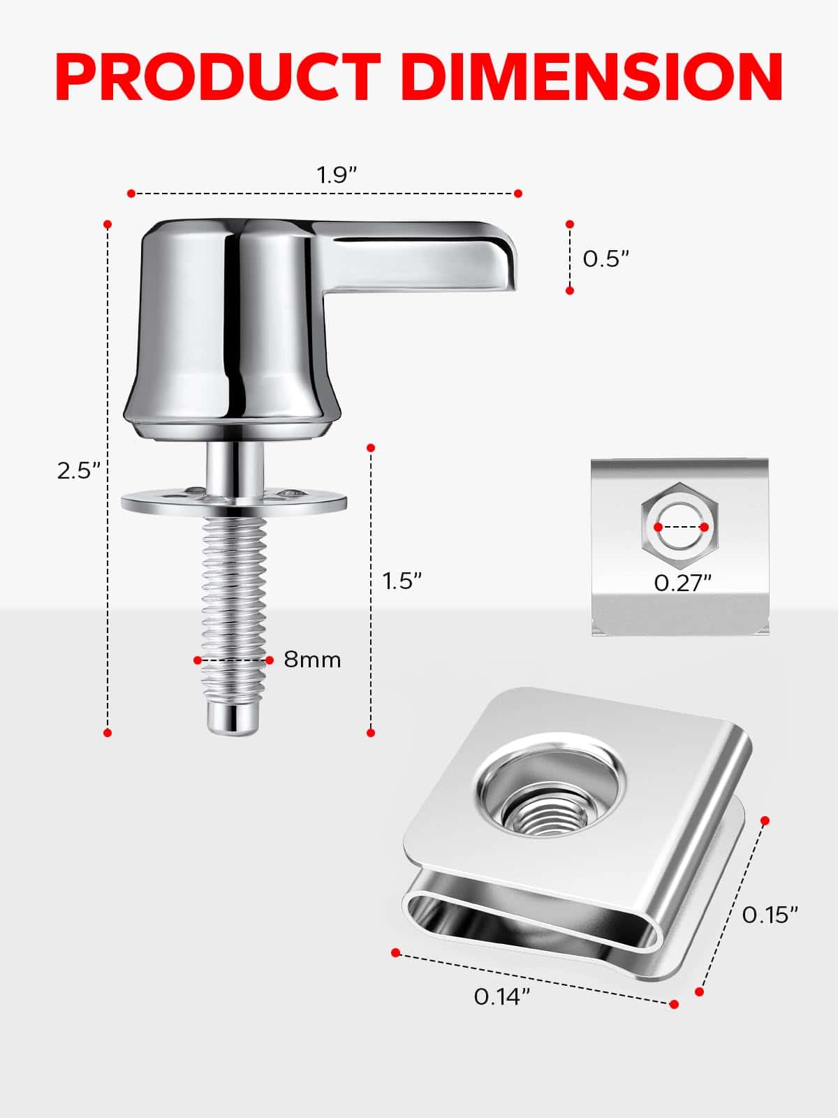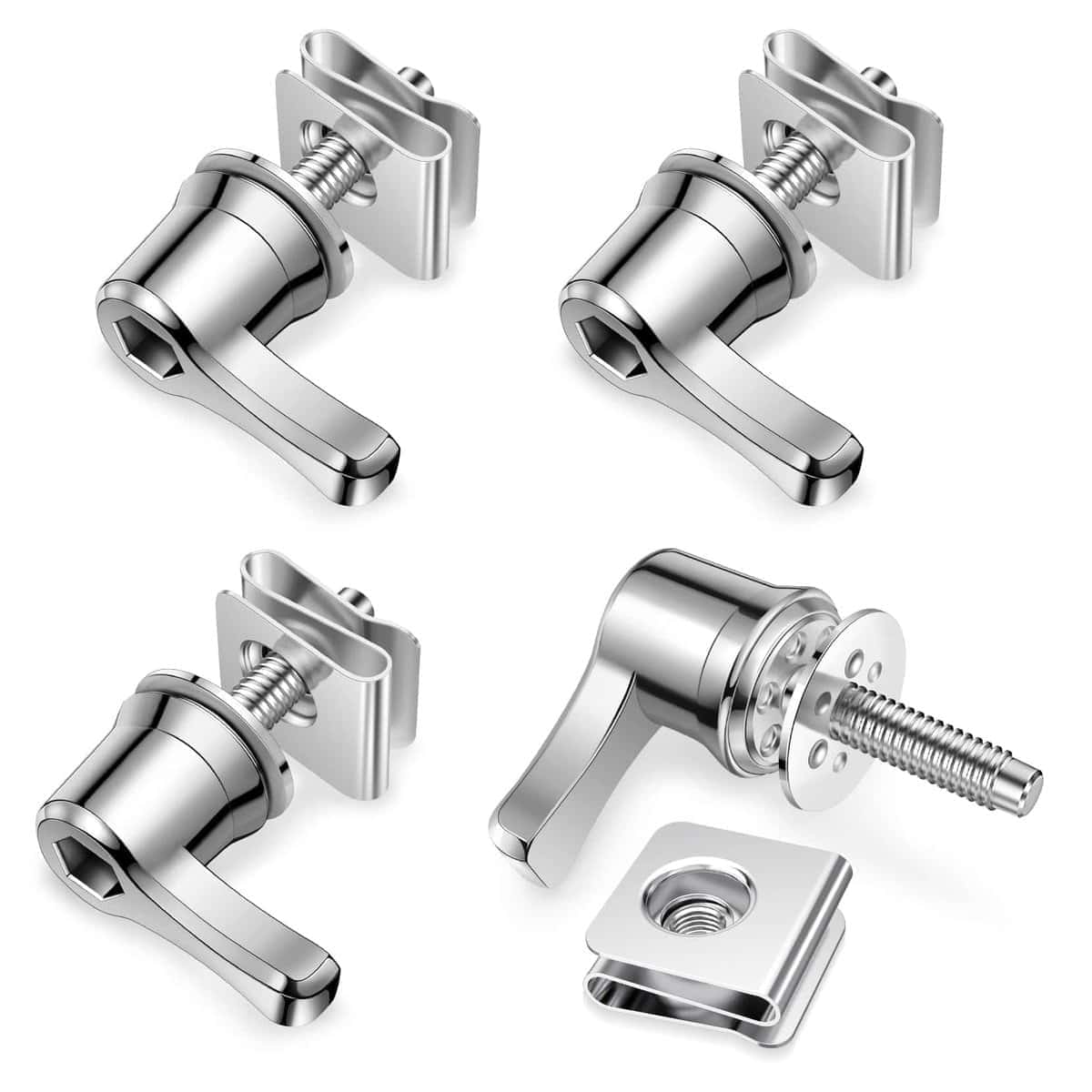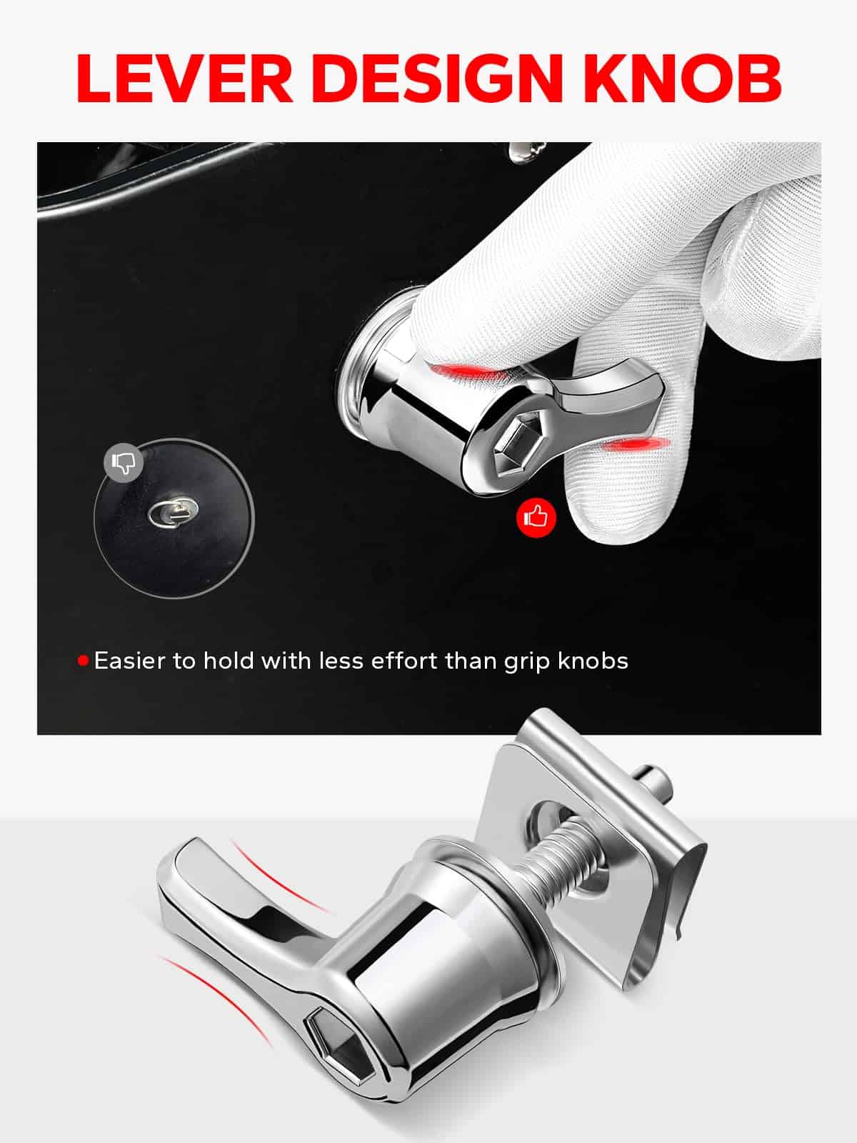 Cerraduras de Sobre de Montaje de Alforjas Amazicha Pernos de Fijación Sistema de Disuasión de Robo de Hardware de Montaje de Alforjas Ajuste para Harley Davidson Touring Street Glide Electra Glide Road Glide Softail 1992-Más Tarde (Cromo). Es un sistema de bloqueo de palanca de alforjas de seguridad de posventa compatible con Harley Davidson Touring Street Glide Electra Glide Road Glide Softail 1992-Más Tarde. Este hardware de montaje de alforjas actualizado es más fácil de agarrar y ahorra esfuerzo que el antiguo estilo de giro; el diseño único de la junta fija flotante, que hace que el alineamiento sea más conveniente durante la instalación, y ya no tienes que preocuparte por perder esta pequeña pieza. Las cerraduras de las alforjas con 6 surcos cóncavo-convexos en la parte trasera de la cabeza del tornillo y el espaciador, que ayudan a evitar que la cerradura se deslice. Escucharás un clic al apretar, en este momento el tornillo está firmemente fijado a tu alforja, no se aflojará ni saldrá, protegiendo más firmemente tus alforjas. Hecho de metal de alta calidad, antidesgaste, resistente y duradero; las cerraduras de las alforjas contra robo están ubicadas en la alforja para ayudar a proteger tus costosas alforjas de los robos y vuelos, haciendo que los objetos personales de tu alforja sean más seguros. Estos pernos de montaje de alforjas incluyen 4 pernos de palanca + 4 clips para tuercas (No se incluyen instrucciones). Además, puedes disfrutar de una garantía de calidad de 1 año bajo uso normal.