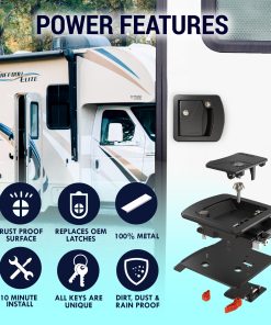 4. NUESTROS CERROJOS MECÁNICOS CLASE-C PARA PUERTAS DE RV están diseñados pensando en la DURABILIDAD. Este pestillo está diseñado para reemplazar la mayoría de los pestillos OEM. SE AJUSTA A LA MAYORÍA DE LOS Clase-C CON UNA ABERTURA DE CERRADURA DE 3.50″ de ancho x 4.50″ de alto x 1.5″ de espesor. Incluimos VARIOS ARTÍCULOS ADICIONALES en nuestro KIT COMPLETO para AHORRARLE DINERO Y TIEMPO. ¡Verifique la compatibilidad con su remolque antes de comprar!