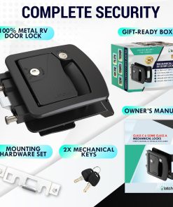 5. DEJE SU REMOLQUE O CAMPER CON TRANQUILIDAD. Nuestro pestillo de puerta de camper utiliza tecnología de bloqueo premium que le permite salir de su RV sin preocuparse por sus objetos de valor. Entre en su remolque sabiendo que todos sus objetos preciosos estarán allí. Nuestra cerradura de puerta de RV incluye 2 llaves mecánicas ÚNICAS DE LA MARCA LATCH.IT, ¡NO MÁS NECESIDAD DE PAGAR EXTRA PARA COMPRAR LLAVES DE RECAMBIO!
