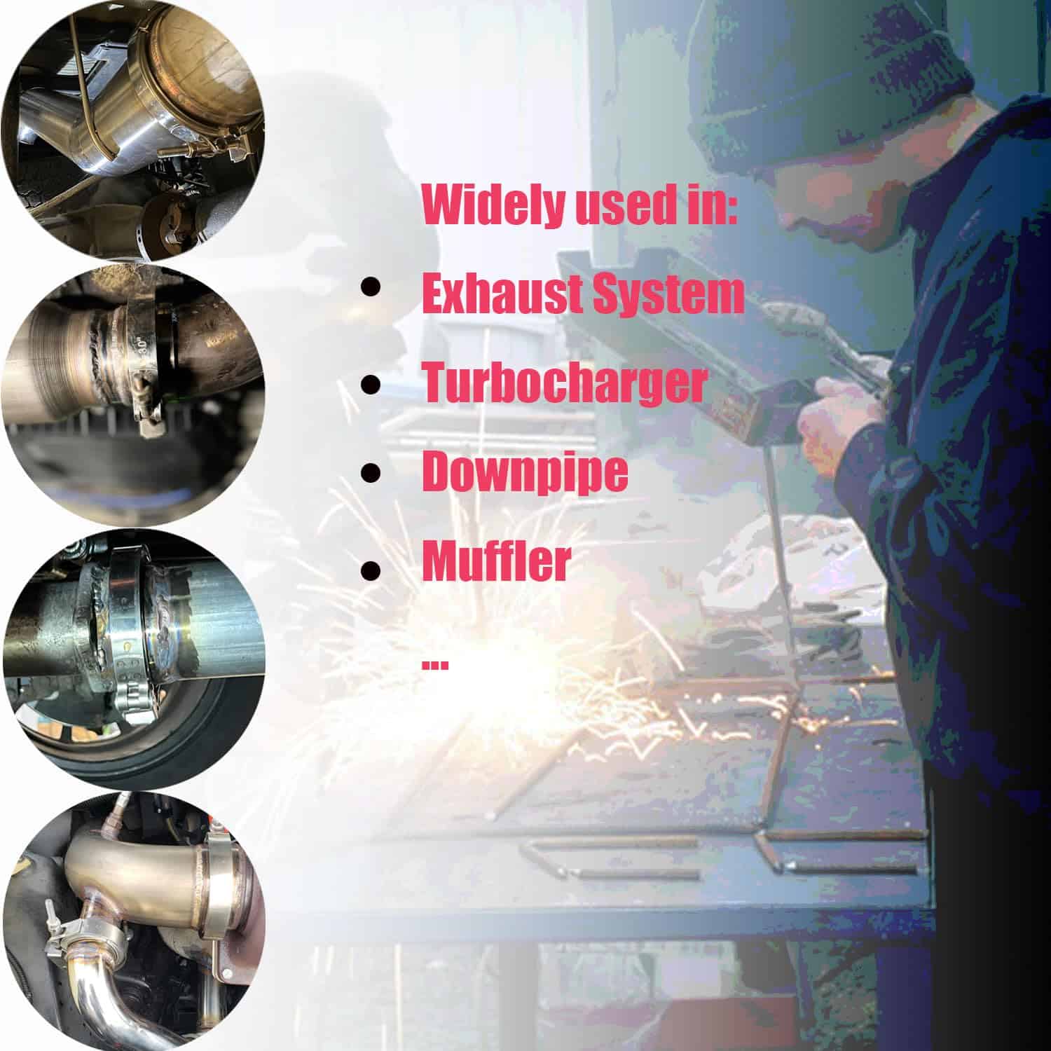 4. Amplia Aplicación: Las bridas son aptas para tubos de 4.0 pulgadas de diámetro exterior. Se utiliza comúnmente en turbo, tubo de escape, silenciador y sistema de escape.